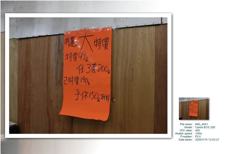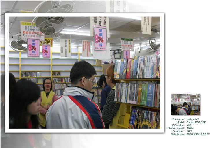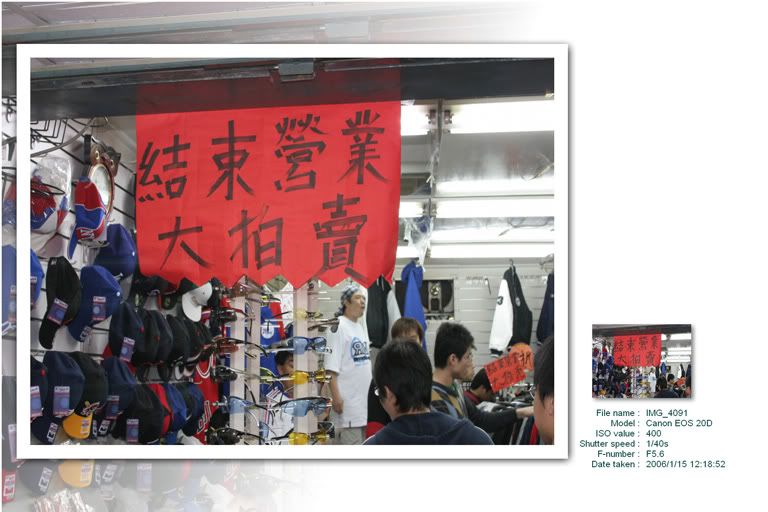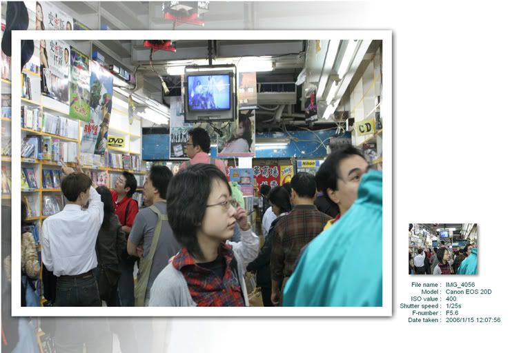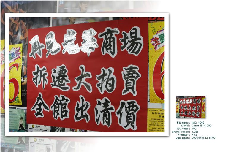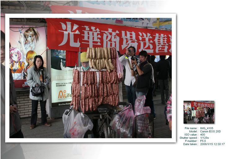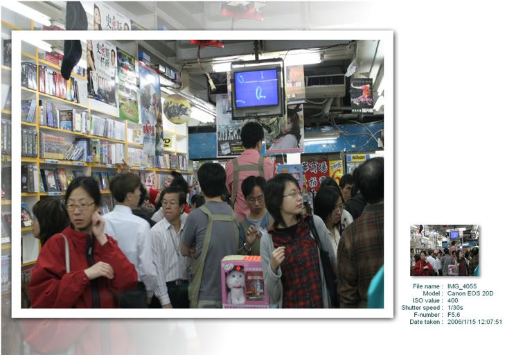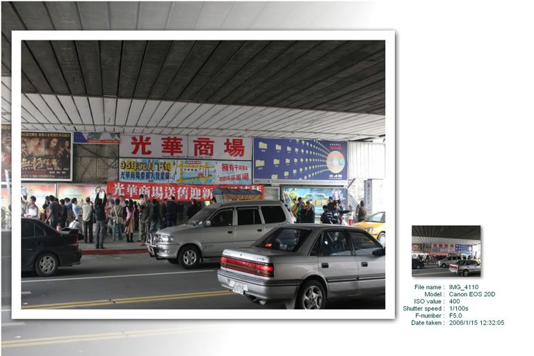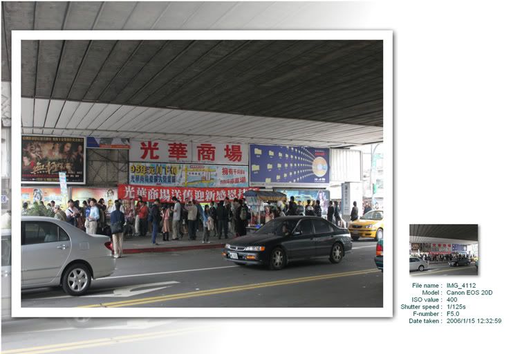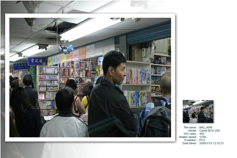今天大約10點多出門,10:30到,原本想說才早上人應該不會很多 再加上光華好像也是10點才開 沒想到一到了那就發現不是這麼一回事...大家都很早起 我最常逛的地下一樓人多到是我逛光華第一次覺得擠的 另外,今天也是我第一次看到一堆機子在光華商場內內外外穿梭 幸好,早在展場受過磨練再加上厚臉皮 還不至於說停下來取個景拍個照後面的人就不由自主的擠過來 而且由於主要目的是拍照 所以就隨性走走青菜拍拍 好不容易地下一樓走了一圈也拍完了 想說...雖然樓上不常逛,不過還是走走看拍些好了 一上樓又發現我錯了 樓上的人更多,多到只有在出入口附近才有點小空間拿起相機 在走道時大家都一個接一個的移動,若是拿起相機拍照還真是怕k到前面或是對向來的人 拍完出來大約11點半左右了 人潮是有增無減 而且根據昨天新聞的說法是"半價" 似乎只有在舊書攤有看見 想到那些舊書攤的阿背或是賣影片,體育用品的店家 還真不知道他們是否會搬到新家 總之~ 再見了,光華商場 ![]() |