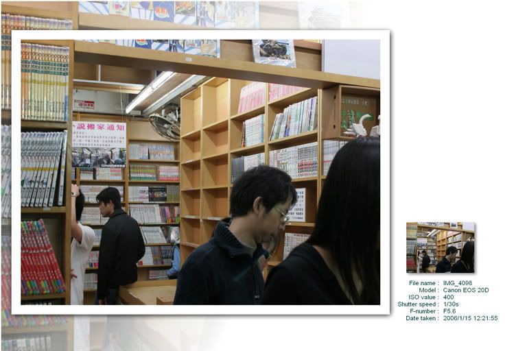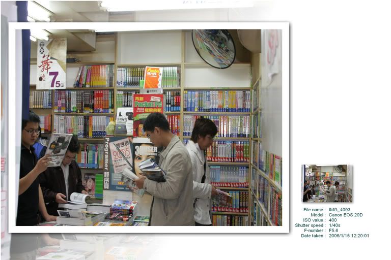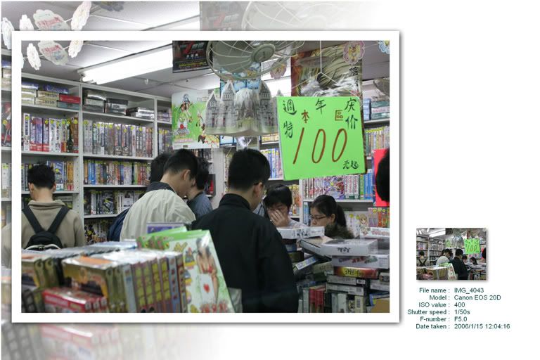 ![]() ![]() ![]() ![]() ![]() 這家不知道會不會搬過去 不過今天的價格還真是俗阿 曾在這裡買過幾條籃球褲 ![]() ![]() 這間書店的感覺不錯 雖然小小間 不過攝影的書,電腦的書,雜誌...這兒還不少 ![]() ![]() 這位大哥會不會買太多了 另外一邊拿的是攝影家手札出的2006年的年鑑 ![]() ![]() 光華商場內第二家漫畫店 ![]() ![]() ![]() ![]() ![]() ![]() 這樣子光華商場地下一樓就一圈了 ![]() 此文章於 2006-01-15 10:06 PM 被 綠凌 編輯. |
