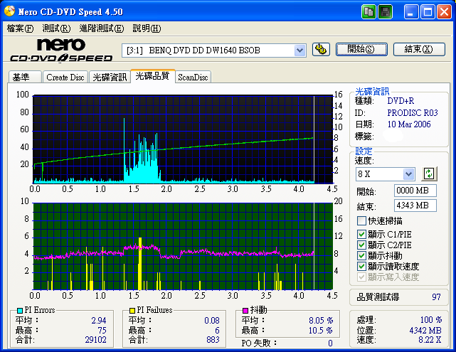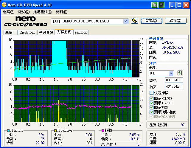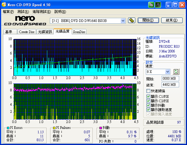 用BENQ及NEC各測了一片,個人覺得還不錯 BENQ1640BSOB ![]() ![]() NEC3550A 1.06 12X ![]() ![]()