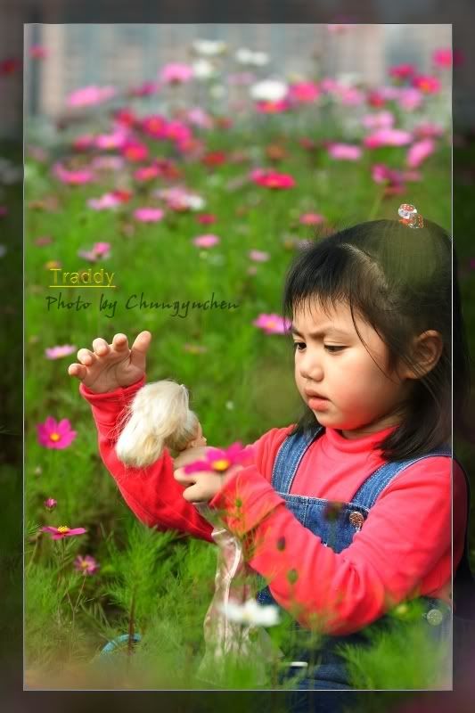 大波斯菊遇到人比花嬌的口愛小安安 頓時之間...遜掉嚕 !