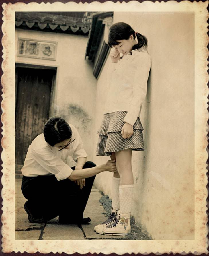 白白的好像是照片老舊的關係,看旁邊的牆壁也有類似白白的.如果不是照片的關係,我倒覺得看起來好像是女孩腿部,除了膝蓋白白處以外的地方,都濕了... |