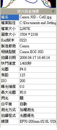 光影魔術手可以在EXIF中看到鏡頭的資訊,