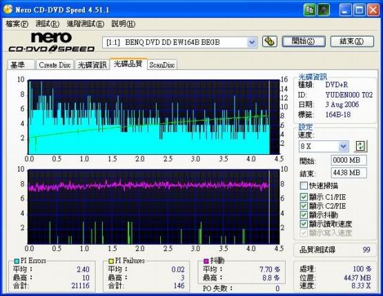 ![]() 太陽誘電的ID ? 就測試圖來看,這片燒錄的質量相當高..... |