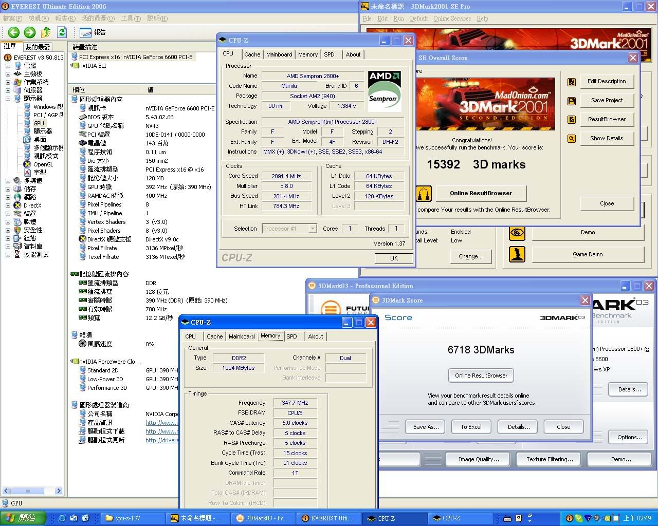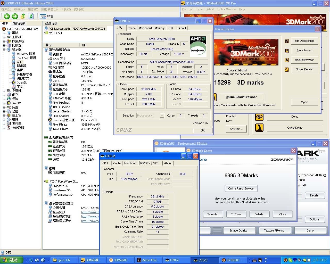 6600核心500應該很容易吧? 6600超核心比超RAM明顯. 記得這張卡推出沒多久就被DDR2的6600打死了....當初我有注意到這張,可是發現GA NX66256DP2預設就是400/800,只貴100~200,所以...後來OC到505/935,03八千幾百分。 建議換7300GT吧.