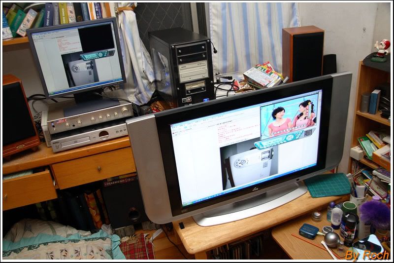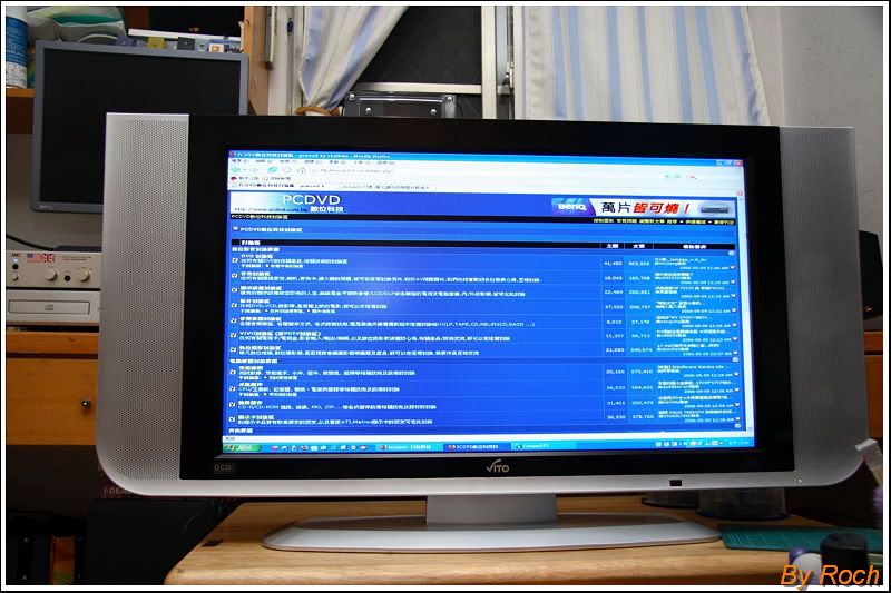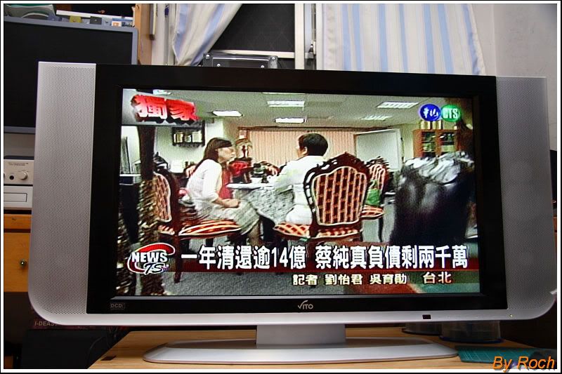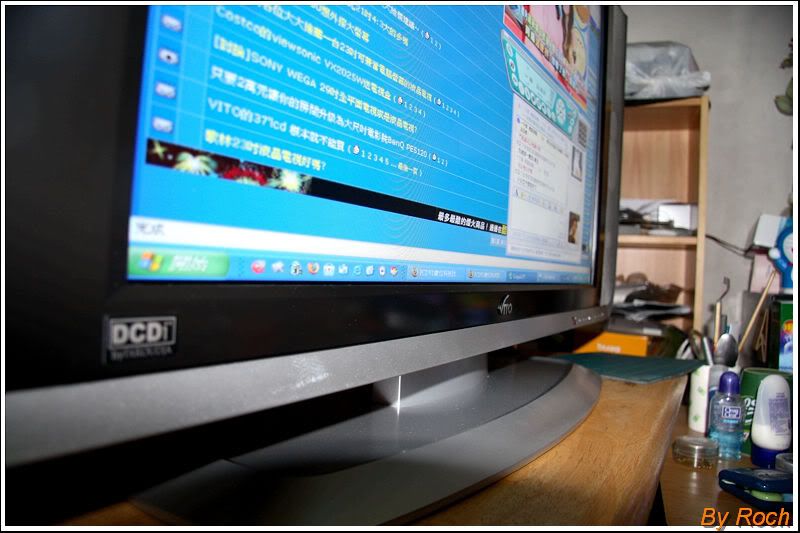 2萬坐擁劇院般螢幕享受,但小弟不到3坪的房間實在是不太適合投影機 32"以上的液晶電視變成了我追求劇院的最佳選擇 但放眼看市面國產一線品牌的32"液晶起碼35K跑不掉 和PE5120差不多的預算要買到32"液晶似乎只能從"白牌"下手 又擔心白牌的品質參差不齊,在MyAV爬了一下文後選了Vito這個品牌, Vito是股票上市公司雅新的子公司,而雅新也是專門在幫SONY等大廠代工的專業代工廠 剛好家樂福有在賣Vito 32"(M3201)要價24888和預算不會差太多就給他買下去了 http://www.vitostyle.com/product_in...t_id=1&ori_id=8 ■產品特色: ● 32吋 16:9 寬螢幕:滿足您大視野的需求。 ● 水平及垂直方向之視角均為170度:從任何角度都可以感受到視覺的純真與震撼 ● 1366 x 768 高解析像素: 畫面清晰不失真且符合電腦高解析度的使用。 ● MTS多語聲道功能。 ● 500nits高亮度,800:1高對比:適合任何觀賞情境, 完全呈現生動純真的影像。 ● 具HDTV相容性(480p、720p、1080i):可收看HDTV數位電視訊號。 ● 倍頻循序掃描 (De-Interlacing): 將一般的電視訊號提升至480p,畫面細密平順及穩定。 ● DCDi影像處理技術:經由修改每一個像素以去除鋸齒狀邊綠。 ● 低幅射最健康、低耗電更環保:平均50,000小時的燈管壽命及低耗電量,使產品使用壽命更長,超低輻射量亦適合長時間使用,減少對眼睛的傷害。 ● 睡眠裝置使您高枕無憂;30/60/90/120分鐘的選擇設定 ● 亮點保固:不超過2點 1. ![]() 2. ![]() 3. ![]() 4.輸入端子一應俱全,只少了DVI,Vito有DVI機種大概再貴2K ![]() 5.看起來很便宜的遙控器 ![]() 6.電視畫面1 ![]() 7.電視畫面2 ![]() 8.電視畫面3 ![]() 9.電視畫面4 ![]() 10.設定畫面1 ![]() 11.設定畫面2 ![]() 12.設定畫面3 ![]() 13.設定畫面4 ![]() 14.接VGA畫面1 ![]() 15.接VGA畫面2 ![]() 16.電腦看DVD ![]() 17.雙螢幕 ![]() 感想: 這台是有附視訊盒的不需另外加購,有線電視畫面在調整亮度,對比,彩度後會更好 接VGA以1360*768輸出效果已經足以讓我的BenQ FP951先晾在旁邊了 要比細緻度是比不上,但以一般用途的瀏覽網頁,看圖差不多可以取代電腦螢幕了, 更遑論使用這台32"看影片及電影,爽度提升百分百,尤其是放"ABC教學錄影帶".... 這台Vito雖然便宜但還是希望能撐久一點... p.s.照片有時會看不到是貼圖空間的問題