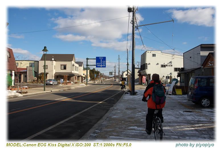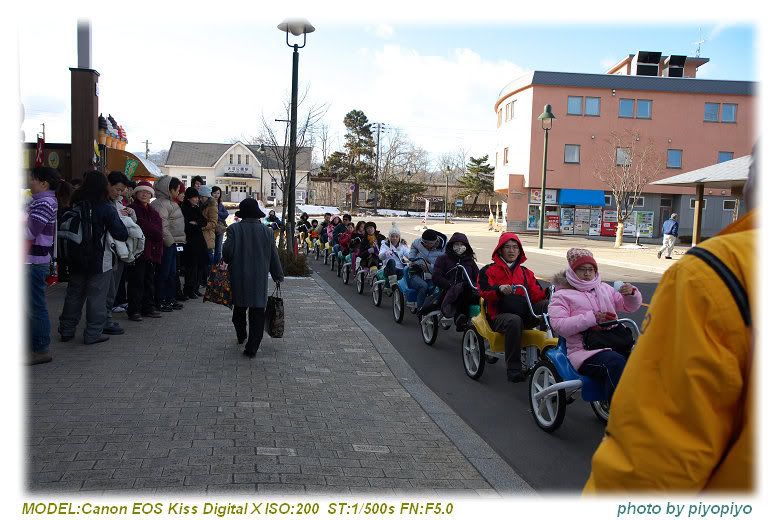 全用 400D+EFS 17-55/2.8 IS 拍攝 1.函館往大沼的電車上 ![]() 2.友人的機絲 ![]() 3.電車上拍攝 ![]() 4.大沼公園到了 ![]() 5.JR大沼公園站 ![]() 6.車站前租車行....一堆台灣觀光團都要騎這種聯結車,其實這個很難騎,不推薦。 ![]() 7.我們這幾個自助的就騎一般「卡打掐」 ![]() 8.騎車沿途的景色,大沼人煙稀少,風景優美,是個退休養生的好所在 ![]() 9.名山:駒之岳,於大沼湖旁拍攝 ![]() 10.美極了 ![]() 11.友人正在用G2+G21拍攝中 ![]() 12.湖面有點結冰 ![]() 13.卡打掐也要來一張 ![]() 14.湖旁公路景色,上面的紅色箭頭是積大雪時給駕駛人分辨行人和車道的分隔線 ![]() 15.北緯42度指標(不過我不知道42度有何意義.....) ![]() 16.大沼湖結冰的層次很夢幻。此鏡頭跟太陽對幹之下的畫質相當滿意。 ![]() 17. ![]() 18.結冰會呈現這種波浪狀態 ![]() 19.回函館的電車。騎完一圈大沼湖真的是累掛了.... ![]() |