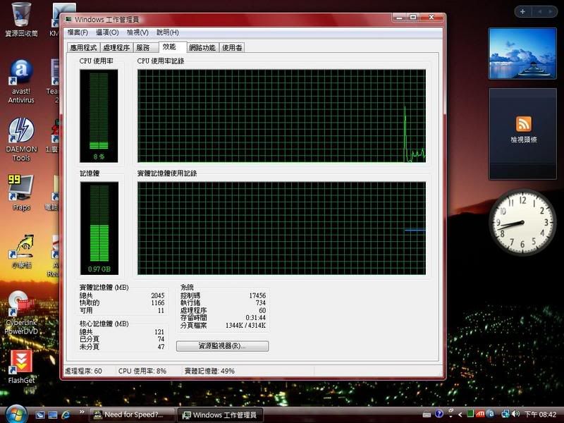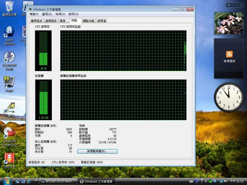 BF2142+常駐程式在Vista下用了1.36GB的記億體.而BF2142本身使用了大約1.1GB的