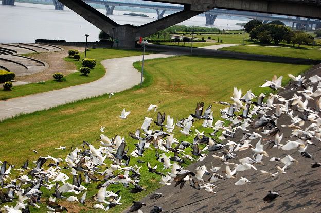 其實第二張要感謝,本來在一旁抽煙的老伯. 他的咳嗽聲嚇到了鴿子. |