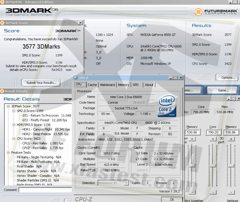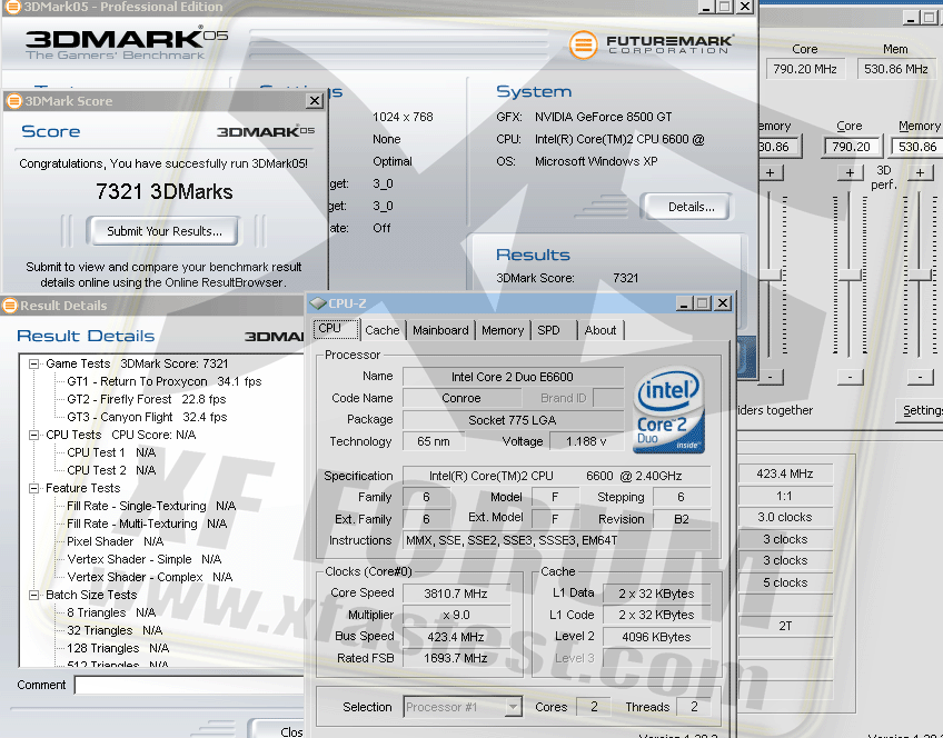 3DMARK03: 12442 ![]() 3DMARK05:7321 ![]() 3DMARK06:3577 ![]() 更多請看 http://www.xfastest.com/viewthread....&extra=page%3D1 |