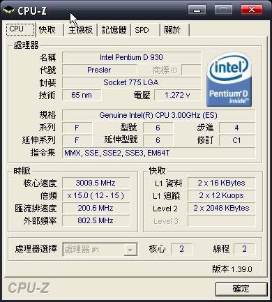[高雄售]INTEL 930ES 3.0/800Mhz/2x2M 雙核心 LGA775