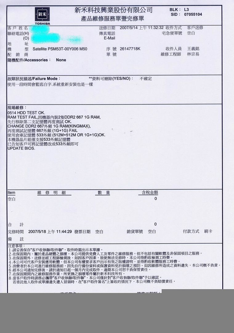 1.¦³¤@¹q·½¼Ò²Õ·lÃa(¤w°±²£¨Sªº´«¤F),¶}¾÷®ÉY¬OLCD»\°_¨Ó,·|³y¦¨LCD¤£·|Ãö±¼(¤Ö¤F¨ä¬Ù¹qªº¥\¯à),¦ý¤£·|¼vÅT¹q¸£¹B§@ 2.512MBÀË´ú¹L¬OÃaªº(©Þ¨ì§O¥xNB´ú¸Õ½T»{¹L¤]µLªk¶}¾÷) NB»â¦^«á§Ú¦A¥h©±®an¨D§ó´«,¤p©j«Üªü²ï¤OªºÀ°§Ú¤S§ä¤F¤@°¦¦P«¬¸¹ªºRAM,´ú¸Õ½T©wµLªk¶}¾÷,°£¤Fì¥ýTOSHIBAªº³o°¦512MB RAM½T©w¬OÃaªº(¨ì²{¦bÁÙ·d¤£²M·¡ì¦])¤§¥~,¤]½T»{³oÓ«¬¸¹ªºRAMµLªk¬Û®e¤âÃä³o¥xASUSªºNB ³Ì«á©O,¤p©jÀ°§Ú´«¤F«Â誺DDR-400 512MB¡K¡K·d©w!!