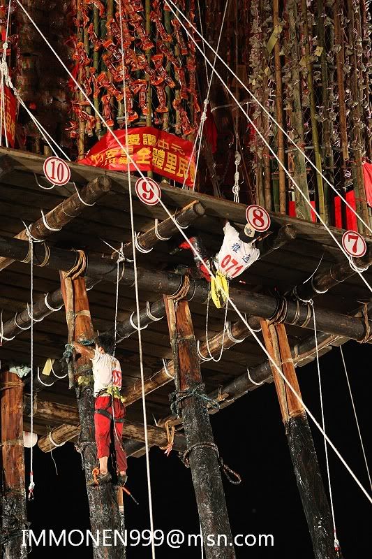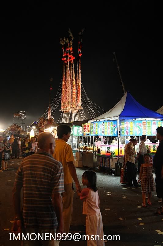 在此就不再贅述了 1.遠遠就看到孤棚 ![]() 2.四周都被攤販包圍 ![]() 3.超大的杏鮑菇 ![]() 4.一份五十∼還不錯吃 ![]() 5.烤玉米 ![]() 6.拉糖蔥 ![]() 7.十六層樓高orz ![]() 8.旁邊夜市的遊戲區 ![]() 9.小孩都玩瘋了 ![]() 10.辛苦的攝影人員 ![]() 11.灑錢 ![]() 12.開賽前的儀式 進包仔香 ![]()