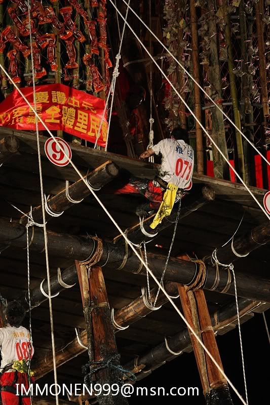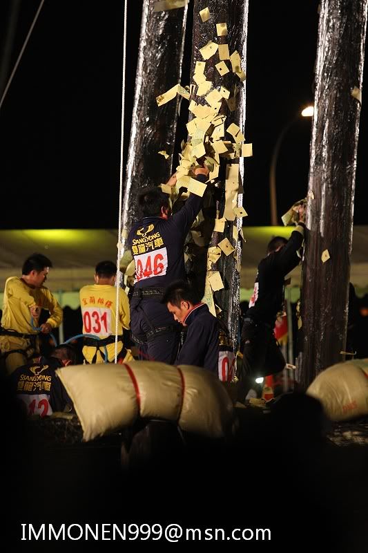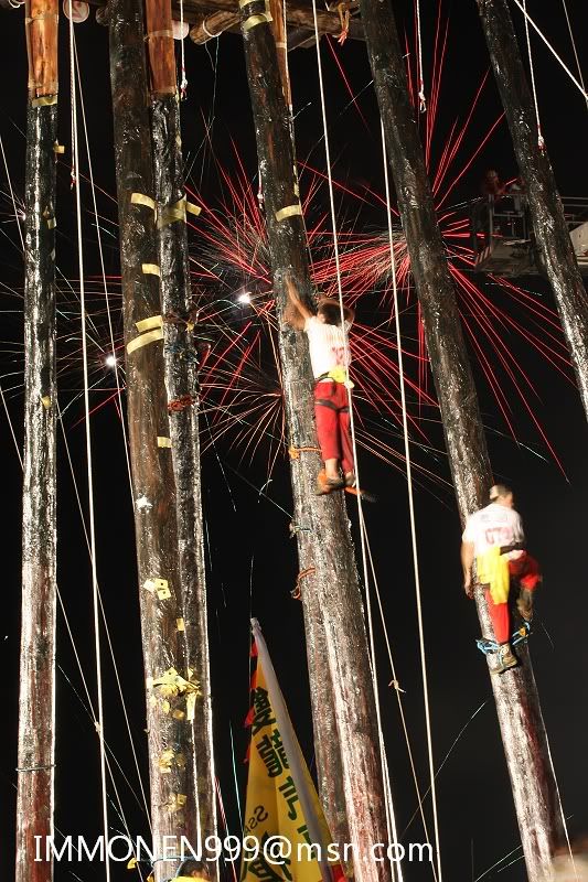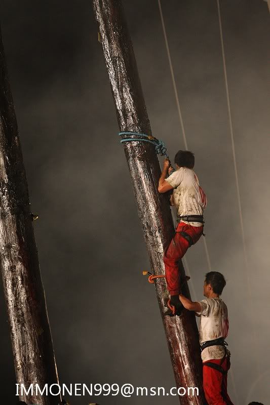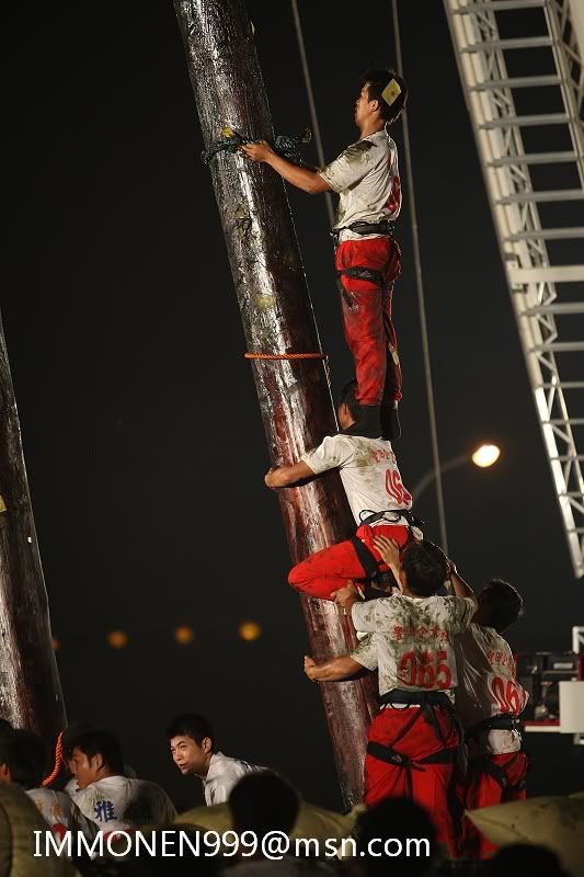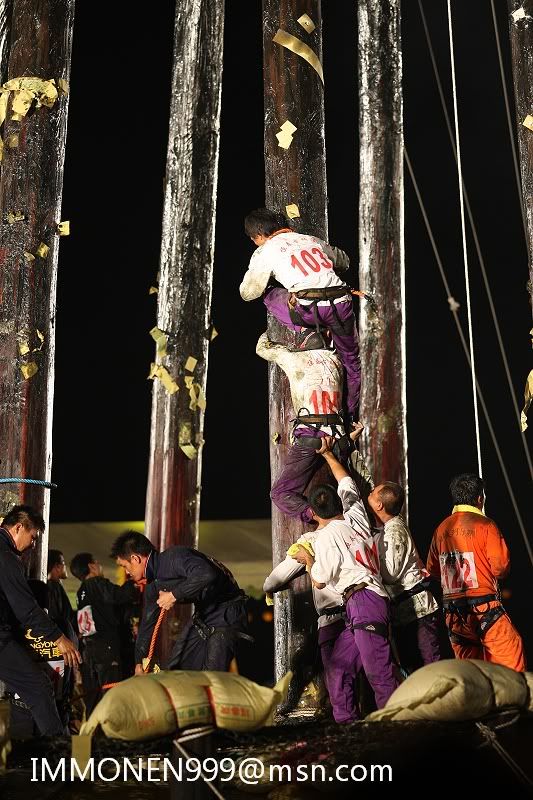 ![]() 38.還要做這危險的動作 再加上滿身都是牛油 華不溜達的 ![]() 39.很容易就失手跌落 以前就是這樣有好多選手喪生才停辦了多年 一直到民國八十年才又開始復辦 ![]() 40.又有第二位選手爬上去了 ![]() 41.第八組的雅適 ![]() 42.危險的動作 ![]() 43.讓人捏一把冷汗 ![]() 44.加油 ![]() 45.差一點而已 ![]() 46.上去了 ![]() 47.歐耶∼興奮盡表於情,呵呵 ![]() 48.這是最後的棧頂 順利將順風旗鋸下 ![]() 全部照片在相簿裡 http://www.wretch.cc/album/album.ph...NEN999&book=102
