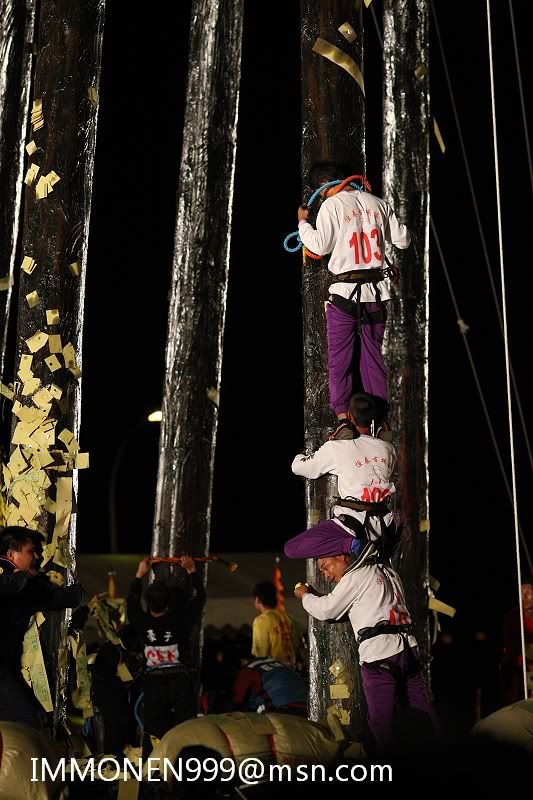 ![]() 26.再接再厲 ![]() 27.我也手忙腳亂的趕緊切換低ISO 小光圈 慢快門XD ![]() 28.我的媽呀∼好高哦 ![]() 29.快追上了 ![]() 30.結果是從恆春來的隊伍搶先一步 ![]() 31.可說是一雪前恥 ![]() 32.因為今天恆春的搶孤第一名被頭城的隊伍拿走 ![]() 33.所以可說是討回顏面 ![]() 34.翻上來的動作叫做倒翻棚 ![]() 35.可說是最危險的動作 ![]() 36.以前辦的搶孤都沒有防護綽施 ![]() |