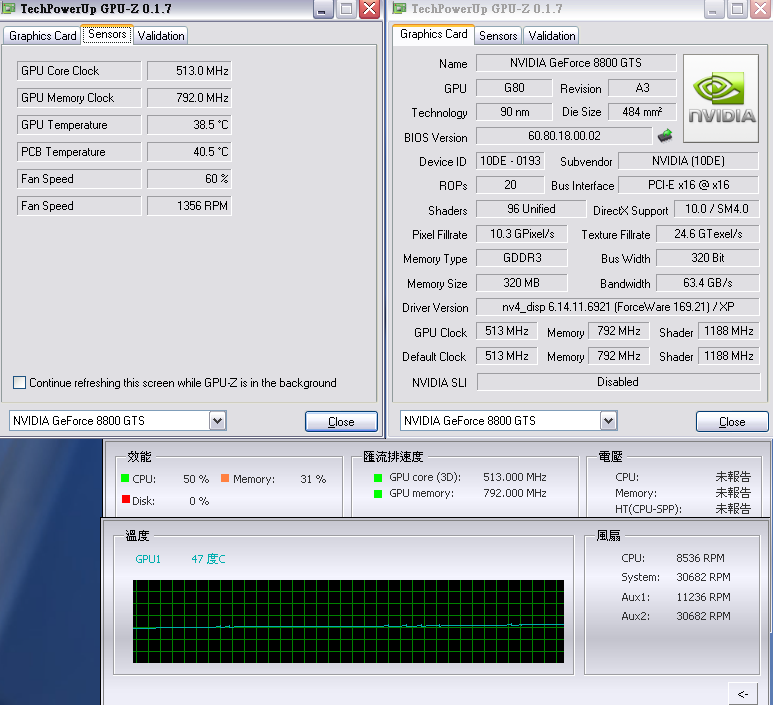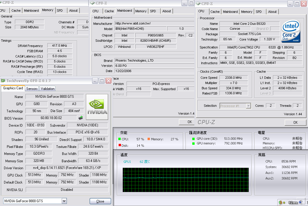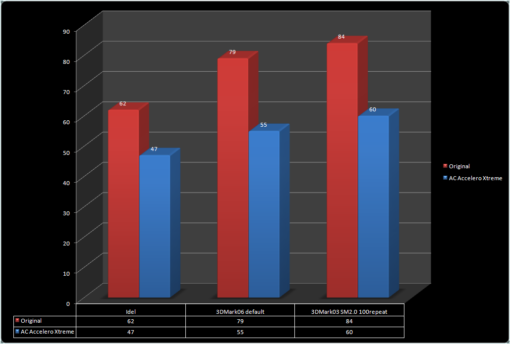 ![]() ![]() 測試平台: abit IB9 BIOS ID=12 Intel E6320 B2 UMAX DDR2-800 SPARKLE 8800GTS 320M Lian Li PC-G50B(側板和上方風扇都有裝 出風) 接下來的測試請搭配Log檔食用↓ http://www.mediafire.com/?lxuk4temow2 原廠待機 62度 ![]() 06全預設 79度 ![]() 03 SM2.0 100次 84度 抱歉 這次還是用這個... ...測試品今天早上才到本人手上 沒時間準備別的 ![]() 再來換裝AC的 先看看配件 左上起 四國語言(不含繁簡中日韓...)說明書 既非手轉 也非彈簧的不厚道螺絲&AC貼紙 導熱"塊"...(10厚一薄) 洞洞擋版 電源模組用散熱片 ![]() 配件s先上去 小晶片那是用AC是說用較薄的散熱膠 建議各位GTS就直接用厚的吧(GTX厚的會被RAM用光) 薄得接觸狀況不是頂好 雖說如此 但本人還是照著AC的指示用了薄的 也沒出什麼問題 ![]() 接下來把本體放上去 後面鎖個螺絲就大功告成了 但AC附的螺絲真太不厚道了 於是本人改用NV原廠給的彈簧螺絲 ![]() 雖然長了點 但6-Pin還是很好插(不太好拔...) 厚度不會和第四槽的卡親密接觸 寬度不會阻礙SLI橋接器 ![]() 上去 長度比主機板還長 各位請注意機殼的相容性 ![]() 待機 47度 風扇比原廠安靜許多 也比VD964安靜 ![]() 06 55度 ![]() 03 60度 GPU-Z的轉速顯示似乎是錯誤的...測是全程都沒變過= = ![]() 下機 各位可以看到這底部比G80鐵殼小 而且散熱膏塗太厚了 建議玩家們重塗 ![]() 總結 ![]() 謝謝收看 -----下集預告----- ![]()