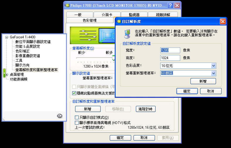 我想要使用解析度1280x800沒有這選項請問怎麼出現這選項呢?