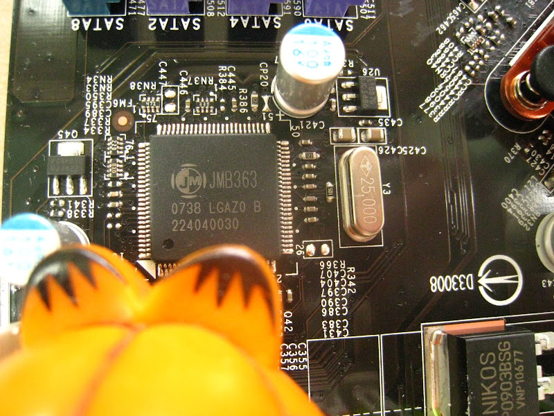 DDR II的記憶體插槽 (16GB Max ; 64bit OS)、IDE插槽 -> 北橋晶片一景 -> 一樣有Jumper MOD的設計喲 -> 外頻MOD對應頻率 -> 擴充插槽區一景 -> 南橋晶片與SATA插槽、前置功能排針一景 -> 這是貓耳朵 ~!@#$%^&*()_+| ㄜ ~ 我是說JMB363 ... 其餘週邊功能晶片 , 首先是 : Realtek RTL8111C Gb Lan -> Super I/O : Fintek F71882FG -> 還有一路發的Realtek ALC888 HD Audio -> 後置的I/O埠 -> 向著日出、加菲立於巨塔頂端 , 誓言定要奪回partner一哥 -> (話說散熱膏塗到一半突然有電話call in , 主任要倉庫鑰匙 ` = = , 望著右手食指上殘餘的AS5 , 算了 ~ 用左手拿去再回來應該OK啦 ... 結果開門後 : 來 !! 有幾顆樹生病了 , 咱們一起去灑藥、要戴手套 , 先洗手吧 ~!@#$%^&*()_+| )下課鐘響過後 ~ 守衛室一景 , 看來加菲前途堪慮 ... ... ... ![]() 拖個稿先 ~ 今天陪小朋友瘋一整天、下午又除草 , 休息一下後續再補上測試 !! ![]() |