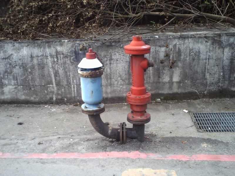 如果是看看是不是有作用 如果有,再看兩者管道是否有相連 我個人猜不是紅色消防栓取代黃色消防水源,就是黃色消防水源取代紅色消防栓 而且紅色消防栓後面還有連著一段類似自來水公司的管線之類的