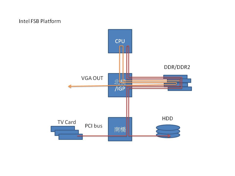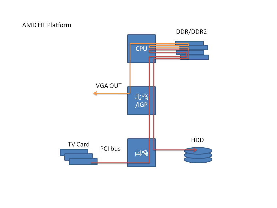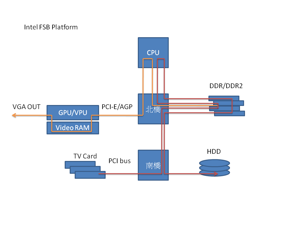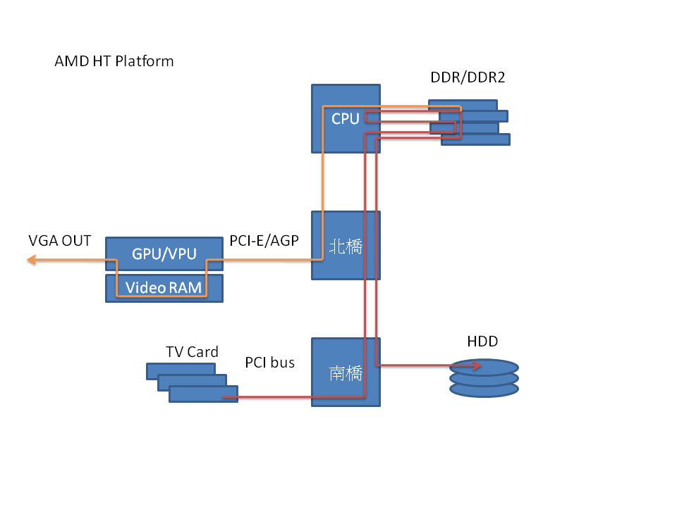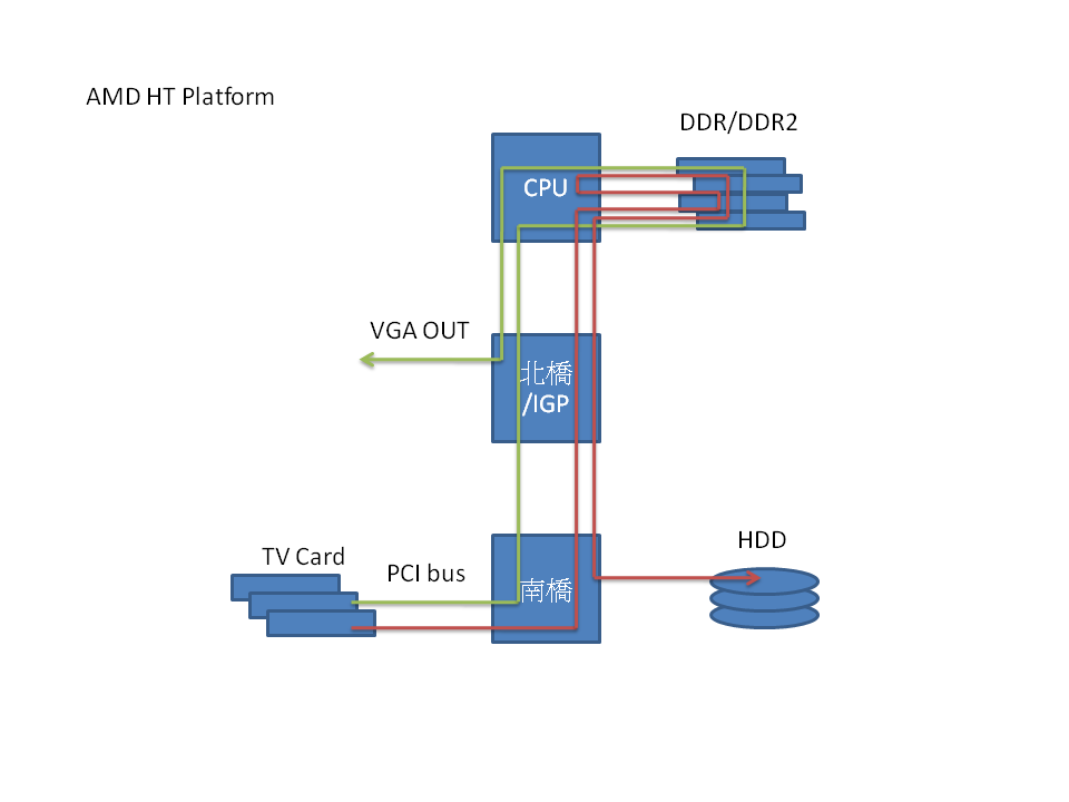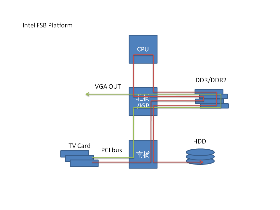 因為 想對自己用內建顯示MB+TV Card , 看TV並錄影 再加上 輸出 是 1920*1200 內建顯示 似乎 撐不住 想知道 內建顯示 是 ram bus 還是 CPU FSB/HT bus 撐不住 目前是用 nvidia6150 + socket 754 SP2800+ 換 Intel G45 IGP 有用嗎? or AM2+ + IGP 780G without sideport ? or AM2+ + IGP 780G + sideport or AM2+ + IGP 790GX(一定有sideport) or K10 的 記憶體控制器 更有效 64bit + 64bit 綠色線 是 video overlay 的 資料傳輸 流程 紅色線 是 video encode 並 儲存 的 資料傳輸 流程 橘色線 是 video decode 的 資料傳輸 流程 看電視 是這樣的 流程與架構 嗎 ? Intel FSB Platform + 顯示卡 看電視 的 資料傳輸 流程 ![]() Intel FSB Platform + 內建顯示 看電視 的 資料傳輸 流程 ![]() AMD HT Platform + 顯示卡 看電視 的 資料傳輸 流程 ![]() AMD HT Platform + 內建顯示 看電視 的 資料傳輸 流程 ![]() 同時 看電視與錄影 是這樣的 流程與架構 嗎 ? Intel FSB Platform + 顯示卡 看電視與錄影 的 資料傳輸 流程 ![]() Intel FSB Platform + 內建顯示 看電視與錄影 的 資料傳輸 流程 ![]() AMD HT Platform + 顯示卡 看電視與錄影 的 資料傳輸 流程 ![]() AMD HT Platform + 內建顯示 看電視與錄影 的 資料傳輸 流程 ![]() 另一種(Time shift) 同時 看電視與錄影 是這樣的 流程與架構 嗎 ? (XP MCE/ Vista 好像是這種模式?) Intel FSB Platform + 顯示卡 看電視與錄影 的 資料傳輸 流程 ![]() Intel FSB Platform + 內建顯示 看電視與錄影 的 資料傳輸 流程 ![]() AMD HT Platform + 顯示卡 看電視與錄影 的 資料傳輸 流程 ![]() AMD HT Platform + 內建顯示 看電視與錄影 的 資料傳輸 流程 ![]() 此文章於 2008-09-23 03:40 PM 被 idleic2 編輯. |