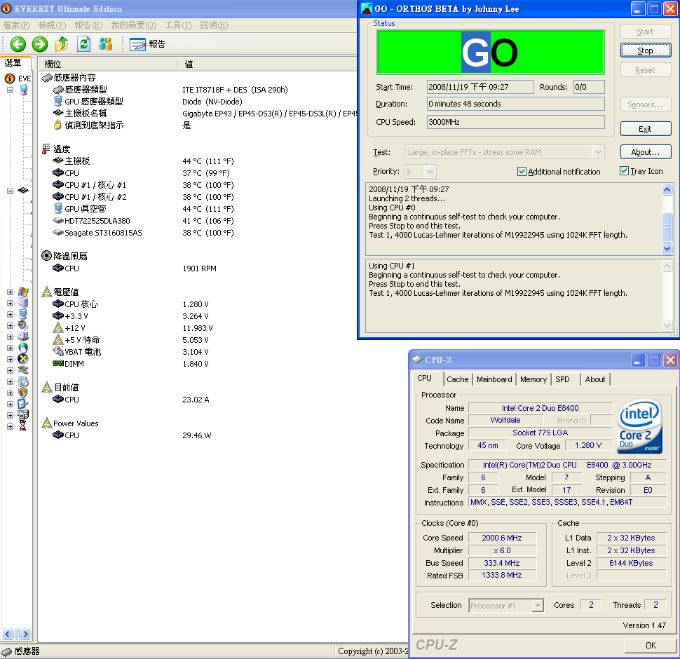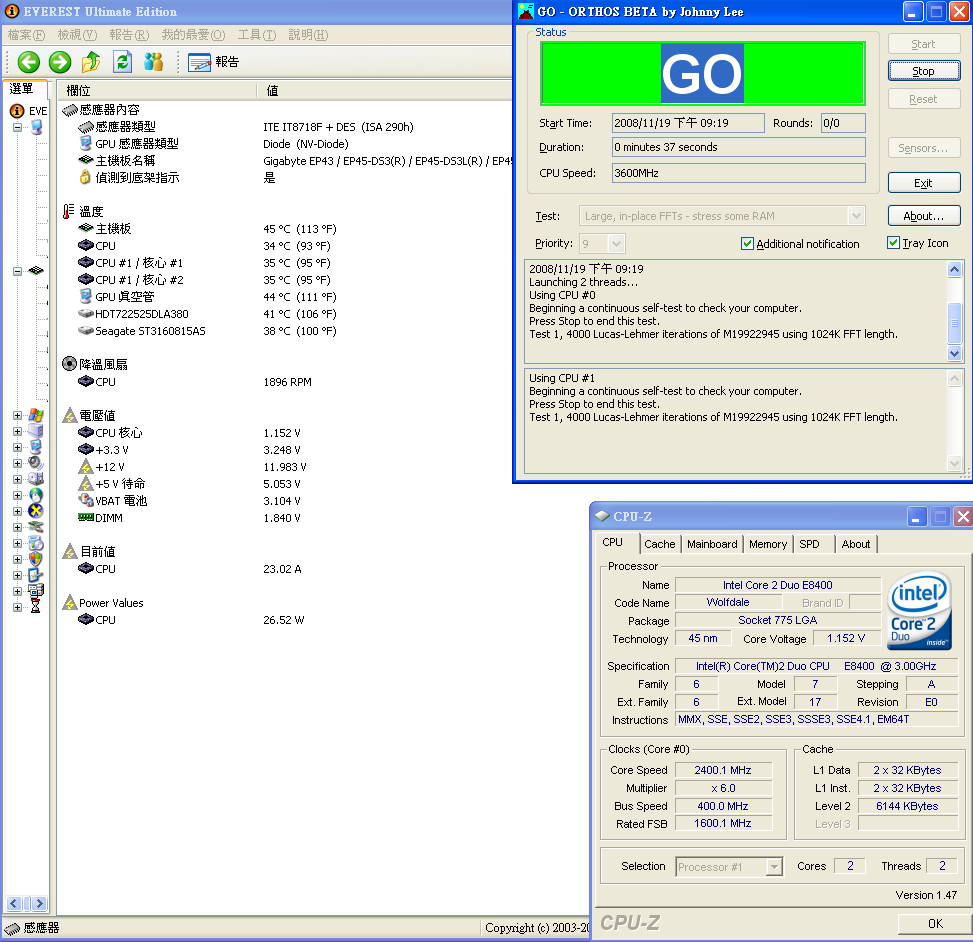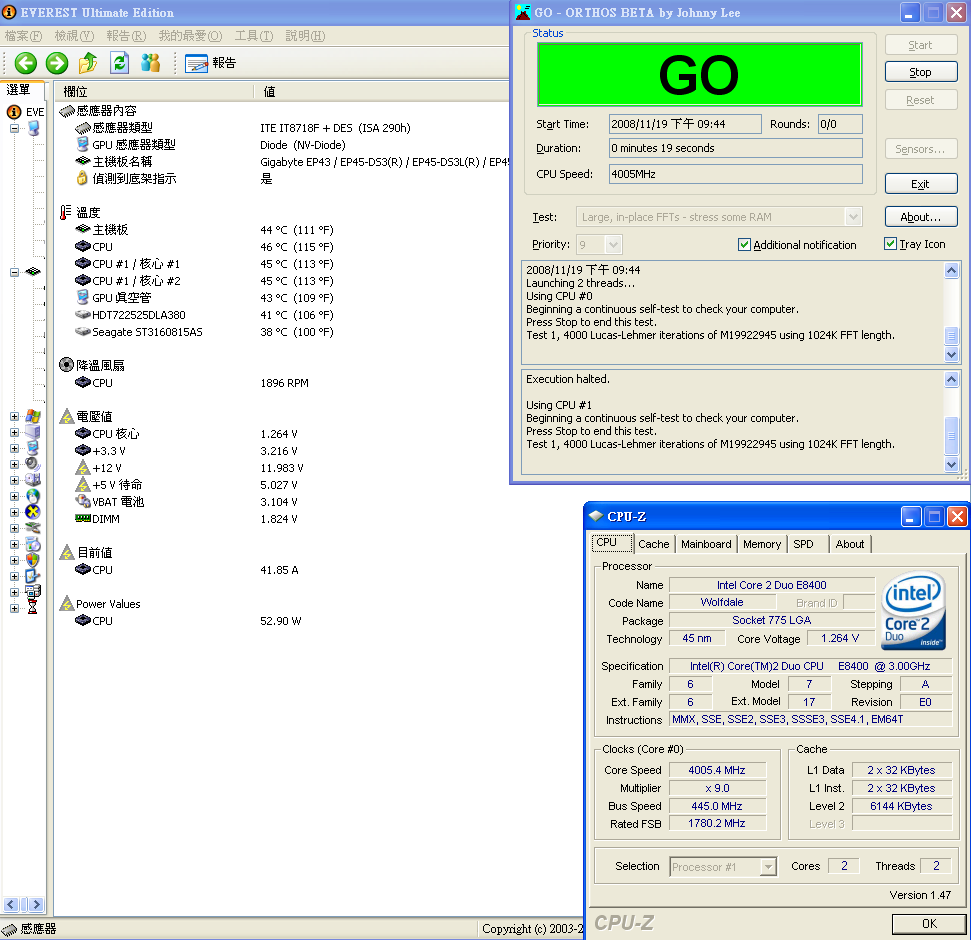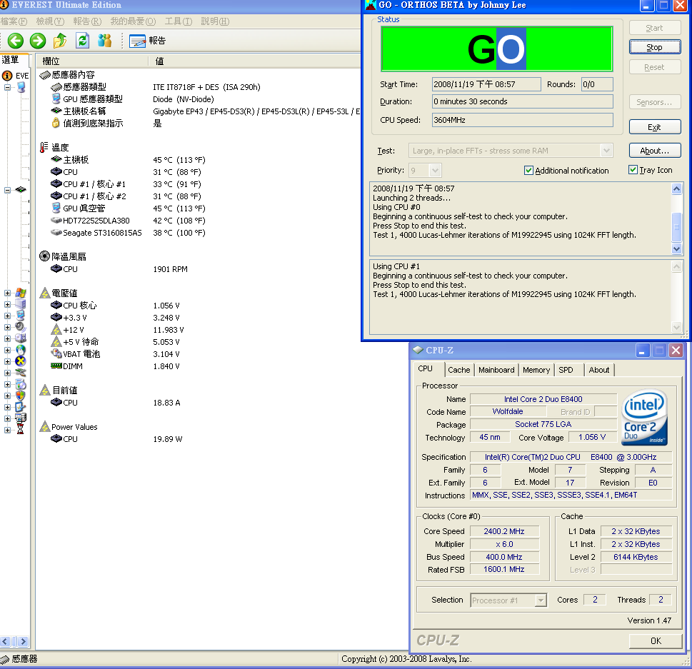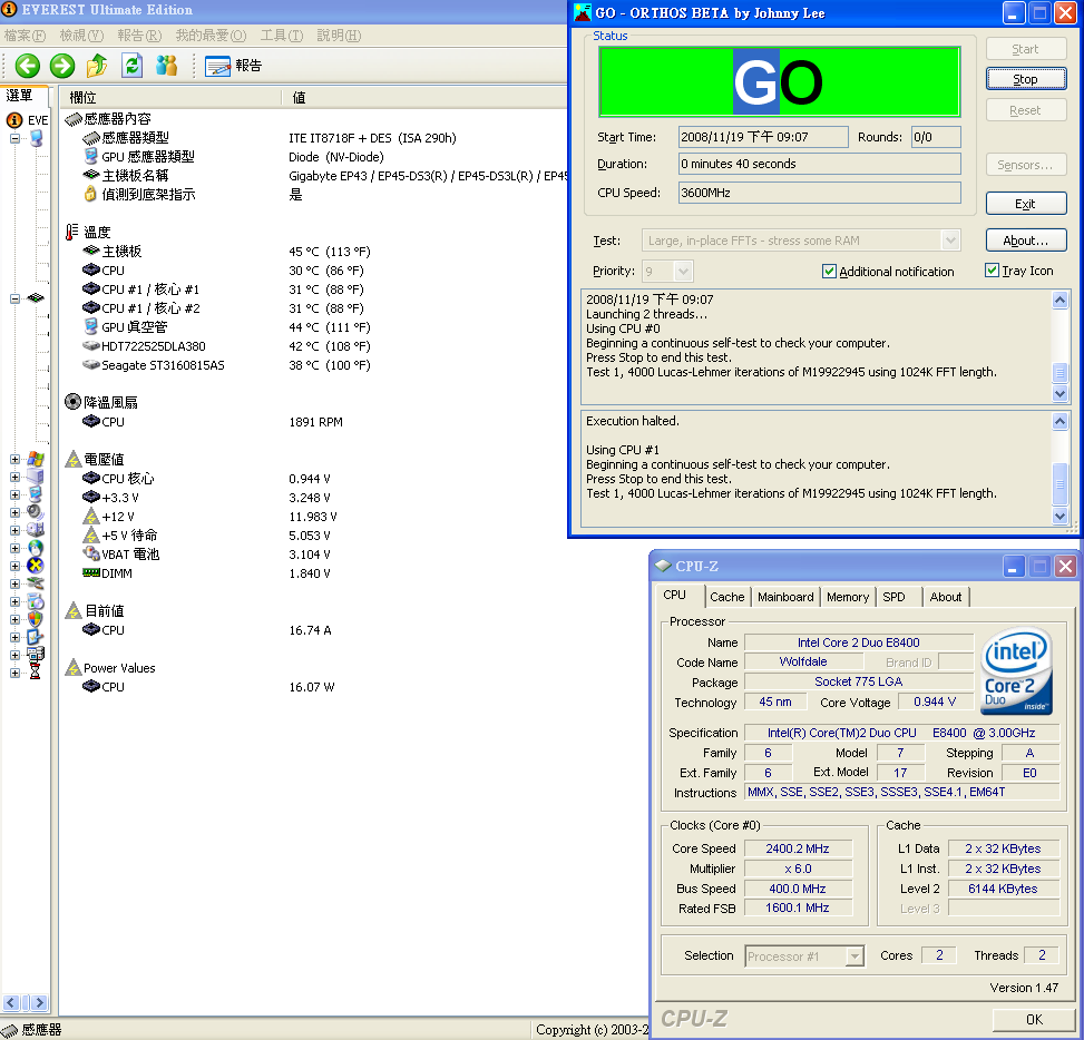 剛好 GA-EP45-DS3L 在 everest ultimate edition 4.6 可以看到cpu耗電量
