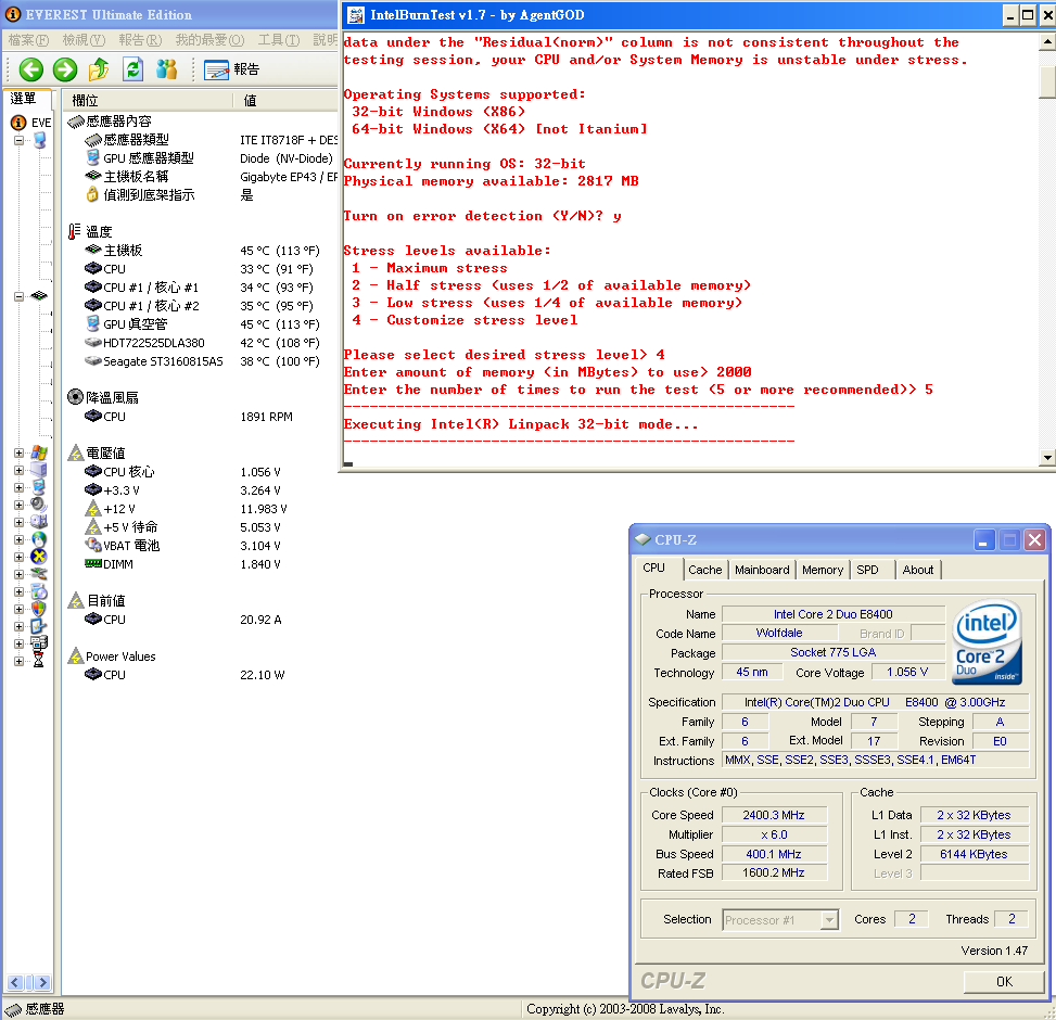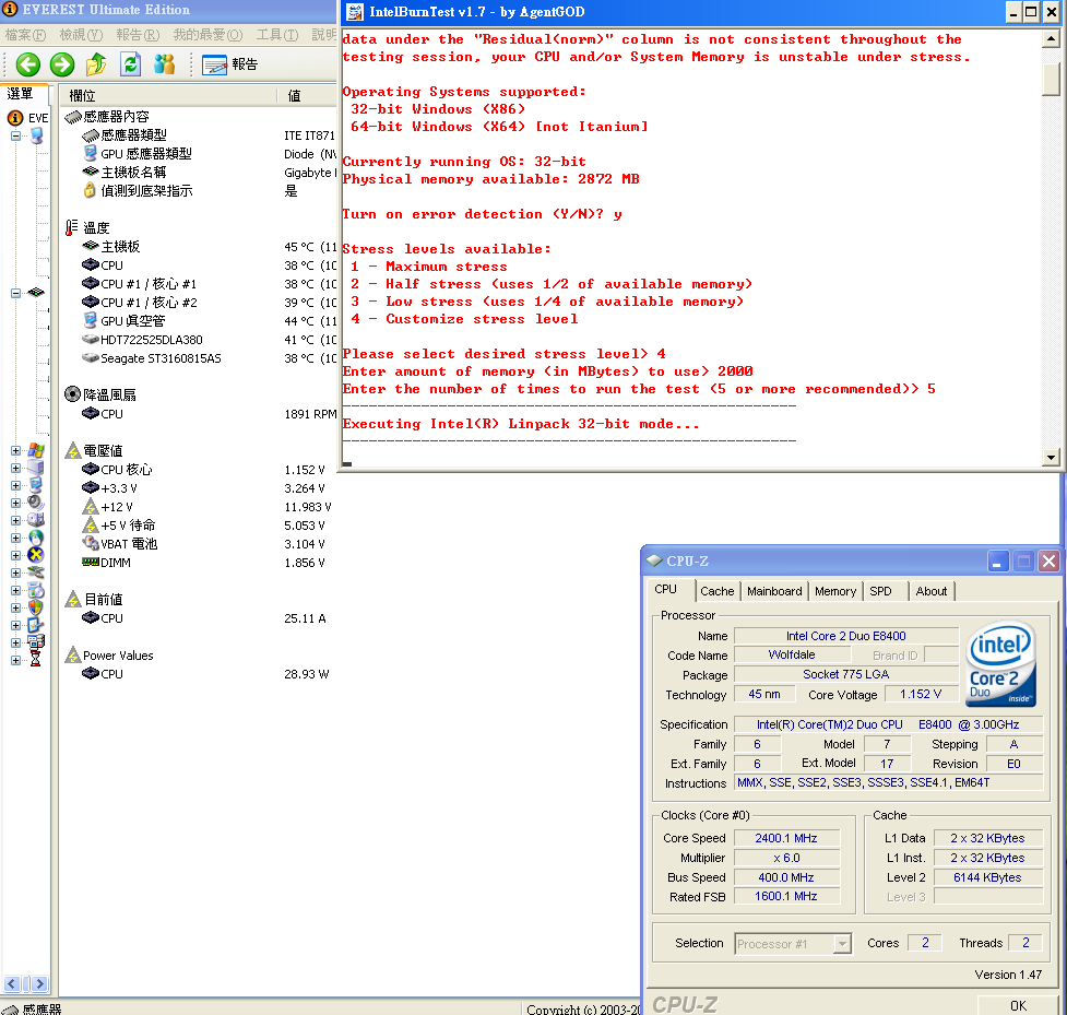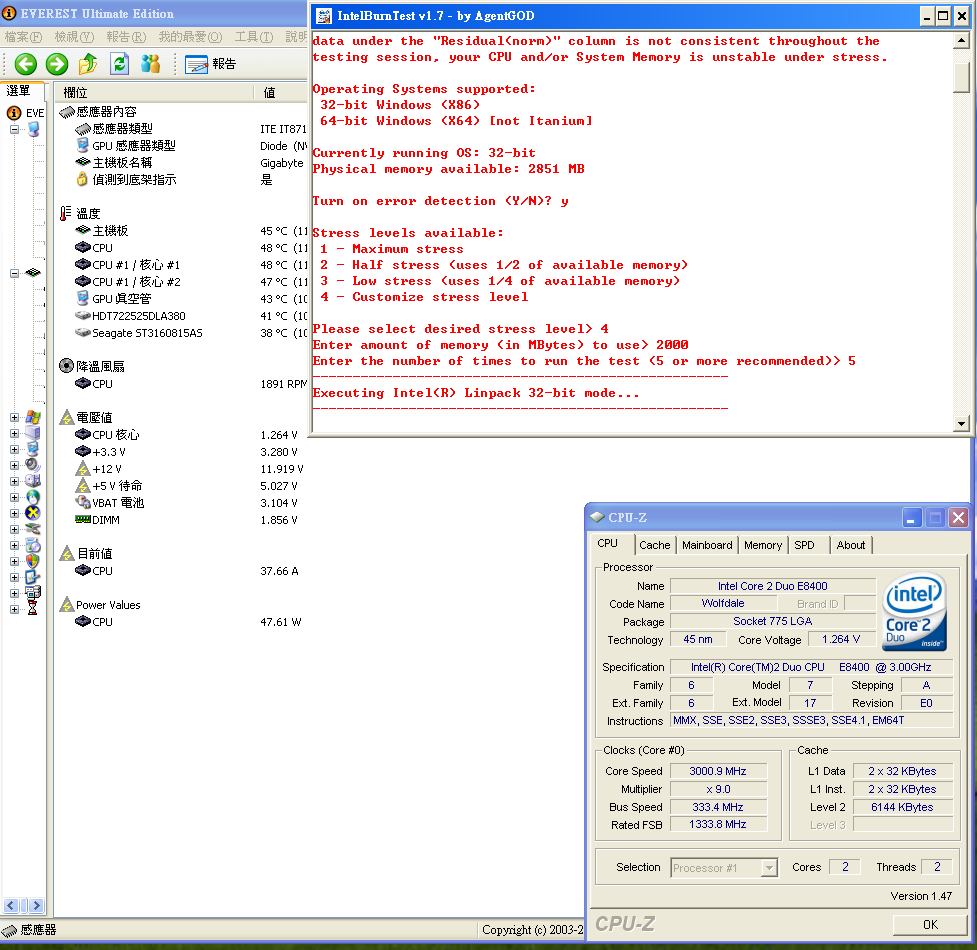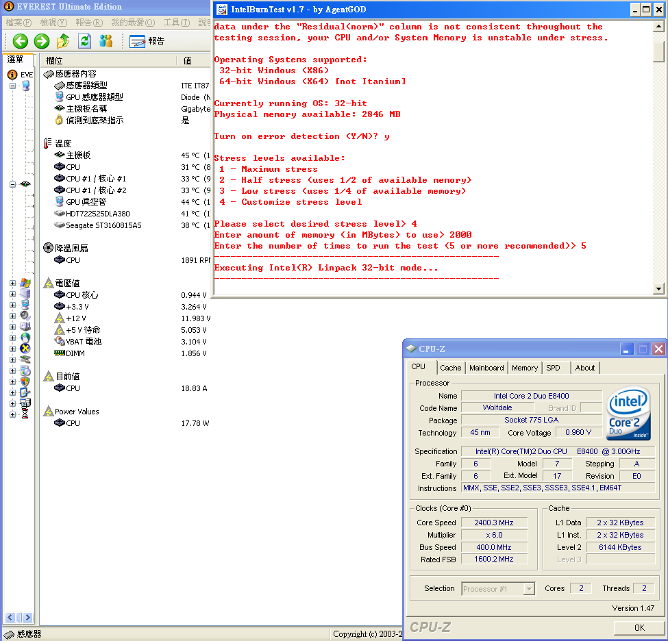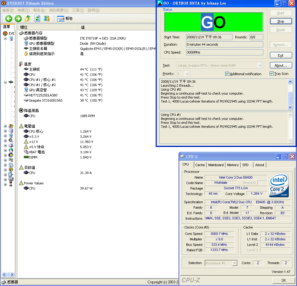 剛好 GA-EP45-DS3L 在 everest ultimate edition 4.6 可以看到cpu耗電量