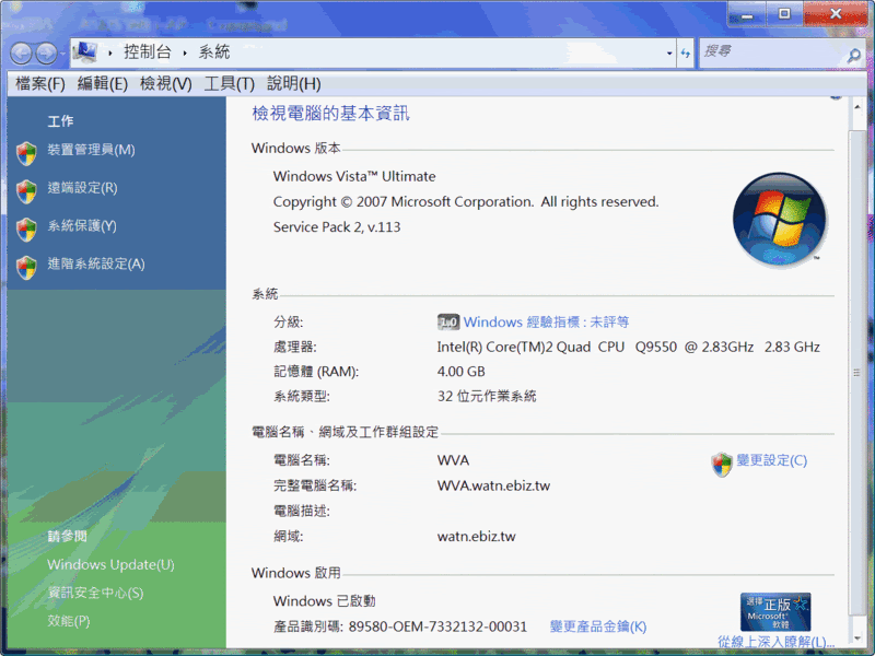 在下照著樓主提供的連結下載、安裝在敝人的正體中文版 Vista,也順利完成昇級啦.....沒有任何問題。 有圖有真相,如下: 1. ![]() 2. ![]() 引用:
