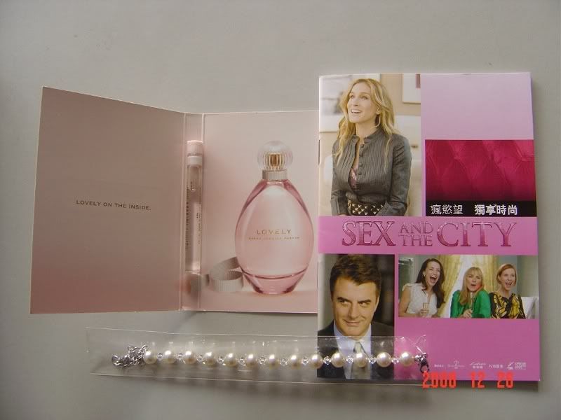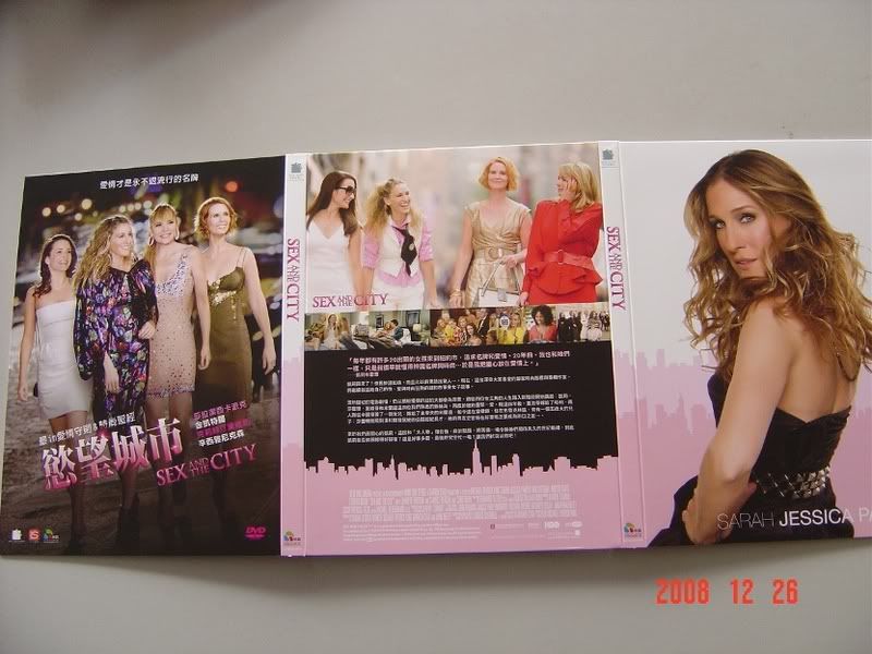 簡單一句話.就是全中文的電影加長板/幕後花絮雙碟DVD,內容與美版/港版(沒有講評/花絮中文)雙碟版相同.光憑這點算是值得購買了. 黑色無光條格外盒 ![]() 打開盒子.先看到相關贈品. ![]() 相關贈品有珍珠彩手鍊(當然是假的), Sarah Jessica Parker品牌Lovely的香水贈品. 還有一堆時尚Coupon(以上贈品與我無關.都會被老婆充公) ![]() 2009慾望城市桌曆(我應該會放在書桌上) ![]() DVD封面.那個限量珍藏版貼紙已經被我撕掉.我覺得美工設計蠻醜的.一堆中文就不提了.為何一定要用跟出租版/平裝版一樣的照片.換張不同的劇照.來凸顯珍藏版的不同,不是更有特色嗎? ![]() DVD外殼展開圖. ![]() DVD內裝是以其他三位慾女作主題.Samantha比較可憐.要把DVD取出才能看到她 ![]() ![]()