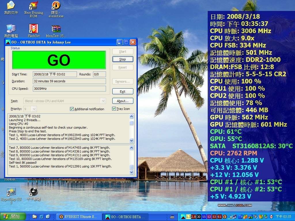 硬體型號:Intel E2160 (預設電壓直上333*9) 欲售價格:$1350元 品樣狀況:盒裝三年保固中 參考網址: ![]() ![]() ![]() ![]() ![]() ![]() 細部說明:原廠風扇有使用過~~卡筍有斷兩根 不介意者請帶回家吧 交易方式:自取 面交 郵寄 宅急便 面交:可於捷運延線不出站交易 郵寄:用便利箱幫您運送到府 @@ 聯絡方式:[email protected] 手機:0920203385 相關備註:個人保三天 請於三日內盡量測試~有問題我會退回原款項~ 但請勿於三日內超頻使用 因為我正常使用剛換下 (換成Q6600)應該是不會有問題的 測試圖是去年測的時候存的檔 ^_^ II. 硬體型號:創見Axeram DDRII 800 1G*2=2G 美光 D9gmh 7hd22 欲售價格:$650元 品樣狀況:九成新 因為換8G使用 只上機過3次 參考網址: ![]() ![]() 交易方式:自取 面交 郵寄 宅急便 面交:可於捷運延線不出站交易 郵寄:用掛號氣泡袋幫您運送到府 @@ 聯絡方式:[email protected] 手機:0920203385 相關備註:如有問題 這個就可能要請您自己送至創見維修站了 因為創見換貨很方便 |