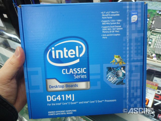 Intel 發售了代號 DG41MJ 的公板主機板 其特徵為 採用 G41 晶片組 ITX 規格 以及 DVI/VGA 視訊輸出端子 儲存 Serial ATA II×3 且配備 Parallel Port 並對應「Core 2 Quad」(TDP65W) 版本 型號︰ DG41MJ 腳位︰ LGA775 晶片︰ G41 配 ICH7 輸出︰ DVI / D-sub 記憶體︰ DDR2 兩條 零售價︰台灣方面捷元尚未引進,日本市場零售價 9,980 日幣 商品情報預覽︰ ![]() ![]() ![]()