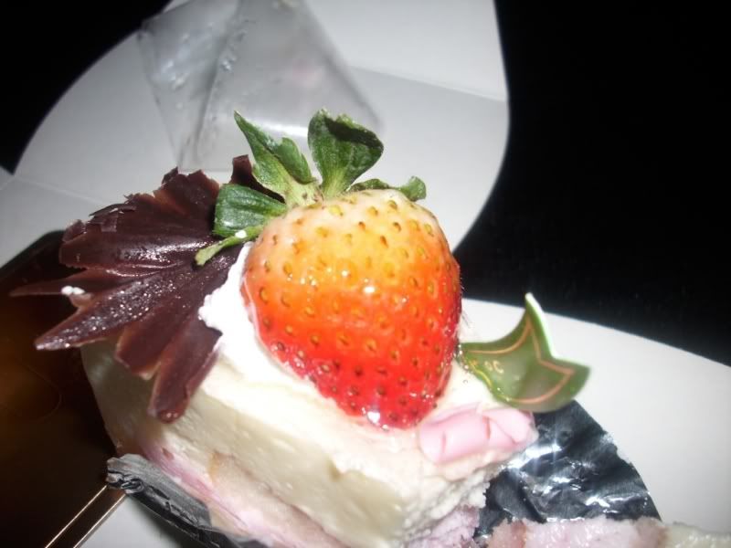 ![]() 昨天晚上跟學長在外面聊天,小胖表妹拿了一盒85度C的蛋糕給我,並祝我生日快樂 裡面有兩種蛋糕 ![]() 這是莓香提拉米蘇 ![]() 而這個是黃金提拉 ![]() 莓香提拉米蘇軟軟的好好吃喔 ![]() 黃金提拉吃起來綿綿的 ![]() 我把它命名為蛋糕上的草莓 ![]() 85度C的蛋糕很久以前吃過 好久沒吃了,昨天再吃覺得不錯吃啊 又軟又綿的,這就是慕斯蛋糕的特色吧 莓香提拉米蘇裡面吃起來有一點酸酸甜甜的感覺 會不會戀愛也是這樣啊 也加了起司的樣子 黃金提拉咬下去很綿口味也很特別 吃得好飽喔 晚上吃了豪華版便當 ![]() 快12點又吃了兩個蛋糕~哈哈 ![]() 2009.06.09_蛋糕上的草莓~表妹送的生日蛋糕~85度C之莓香提拉米蘇+黃金提拉高畫質影片 ![]()