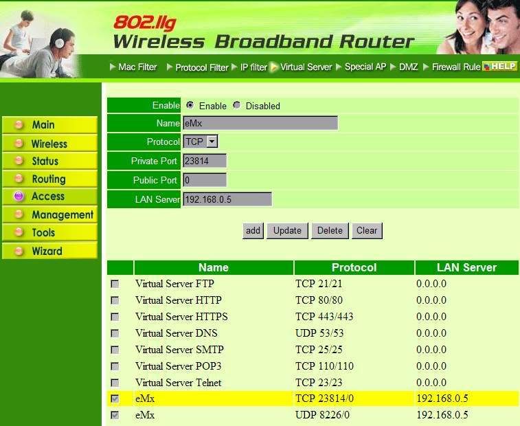 如果你有用eMule那會用到UDP,Virtual Server(或稱port forward)是NAT基本功能,