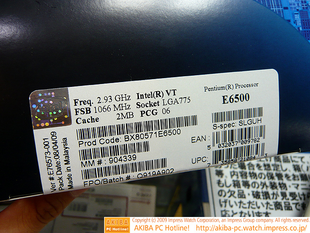 Intel 發售 Pentium Dual-Core E6500 盒裝正式版