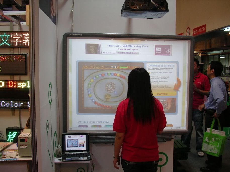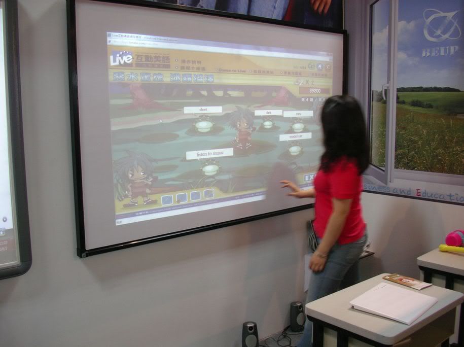 三館是光電影音區,一進來就看到這個:用電子感應的IT-Board(大型互動式觸控面板),操作方式是用大型的觸控長筆來點面板的