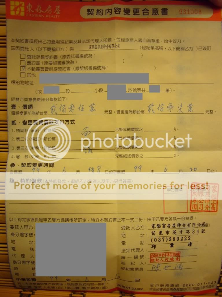 成交價格也談好了 都已經約好要簽約了 為什麼到我打電話去確認簽約細節時 才跟我說賣方已經把房子賣掉的事實 ?? 苗栗東森房屋 你好樣的... 下面這張是後來已經談定要用207萬成交後簽的變更契約... ![]() |