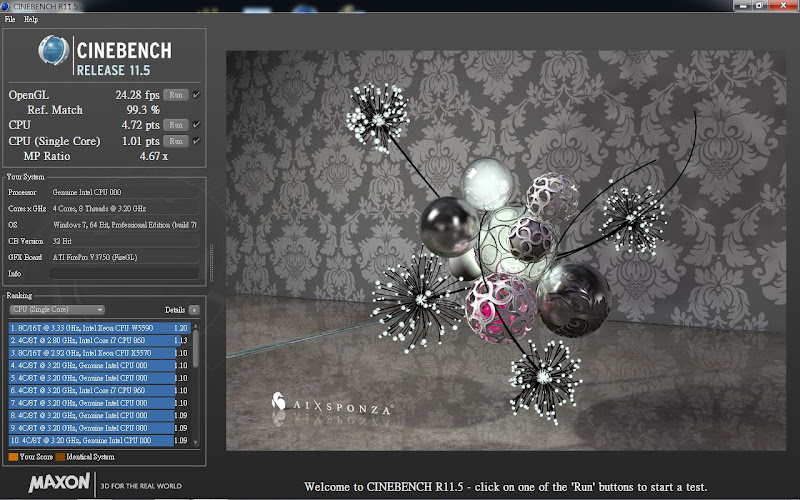 CINEBENCH R11.5 32bit @ Windows 7 64bit