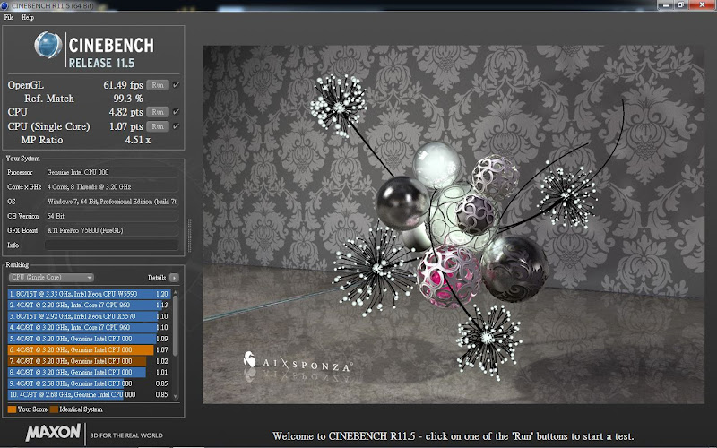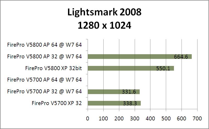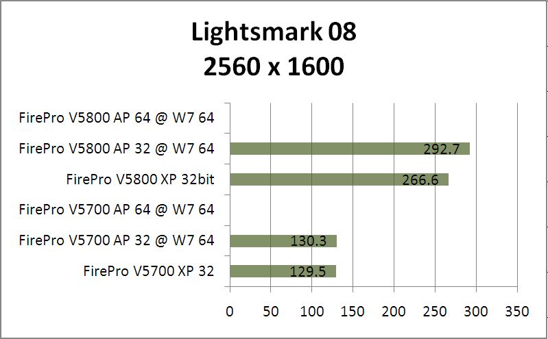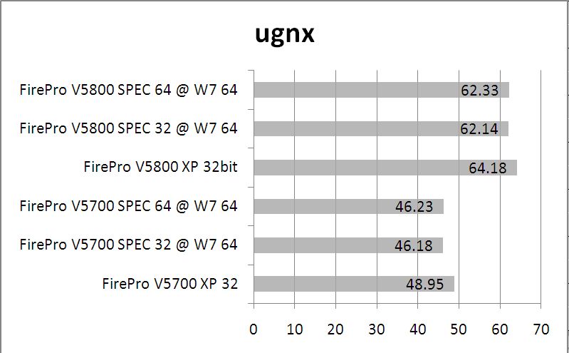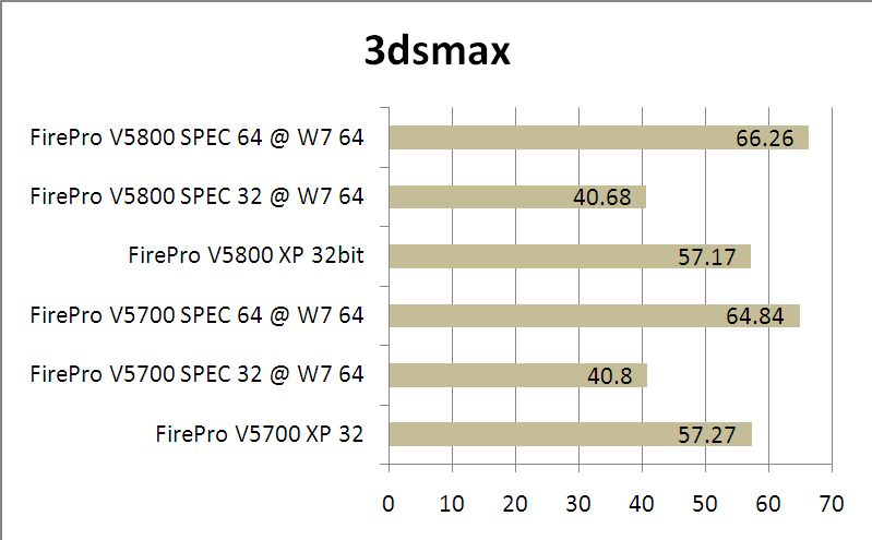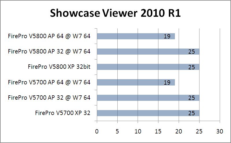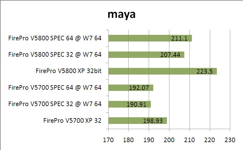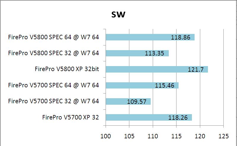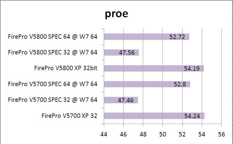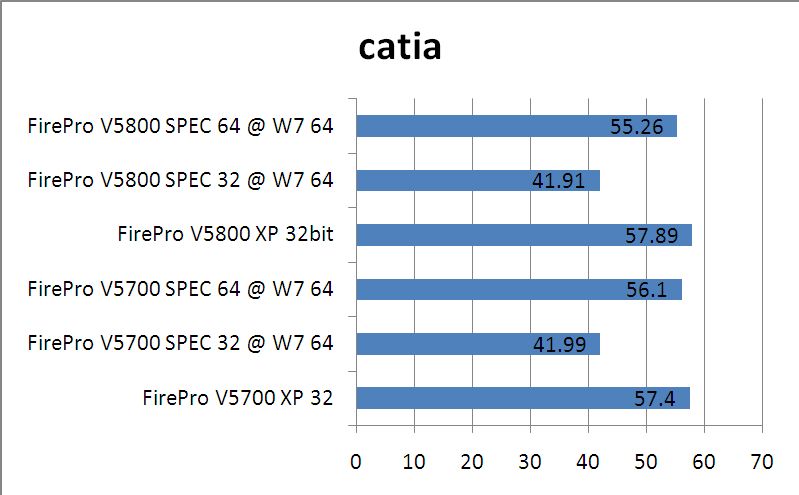 ATI FirePro V5800繼承以往中階專業繪圖卡的優良傳統,以不插電的設計推出市面,而比起過往的中階產品僅僅是將低階產品的記憶體規格變化一下,就成了另一款產品的作法,V5800可以說是非常的有誠意。從規格面來和V4800相比,V5800的核心SP數量足足多出了一倍,雖然時脈和記憶體容量沒有太大差別,可做事的人多了,事情自然就做的多了,這邊我們一樣以幾套專業繪圖的測試軟體來看看V5800和前代中階V5700之間的差距。