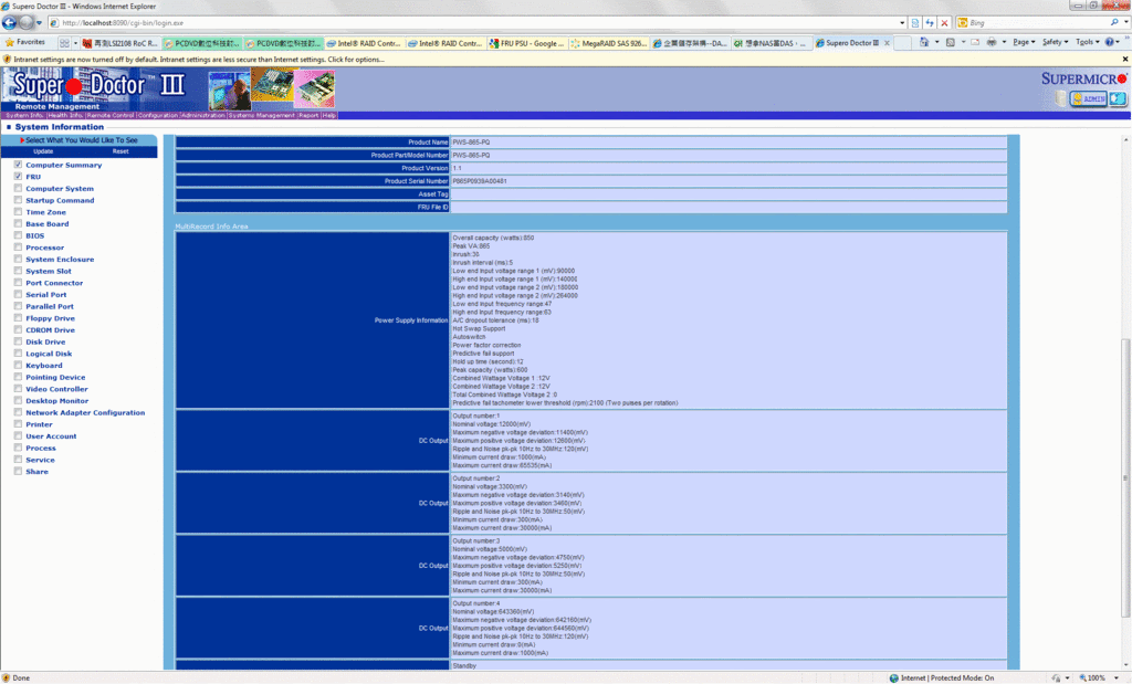 在專屬的SD III就會看到多出一個選項... ![]() 點擊後便可得知相關的PSU狀態... ![]() |
