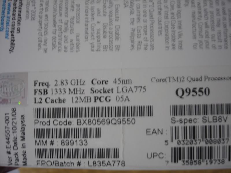 1.品名 :Intel Q9550 E0 盒裝正式版