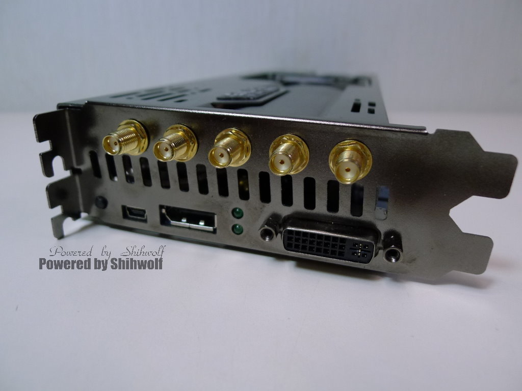顯示卡輸出側I/O 配置, 上方五個接頭是鎖無線天線用的, 如果還是喜歡一般線性輸出, 仍有DVI, Display Port, mini Display Port.