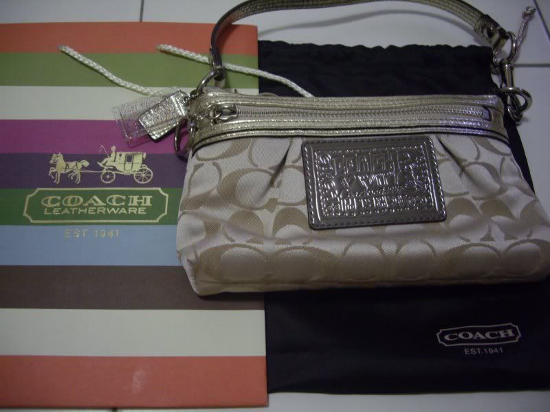 [高雄售]COACH POPPY 駝色C Logo漆皮飾邊 手拿/手提包