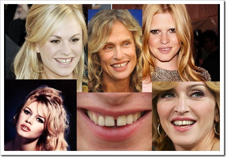 有些人的牙縫是故意撐開的, 我也是不懂這種流行... 轉vogue>牙縫女星Lara Stone,Vanessa Paradis,Georgia May Jagger性感惹人愛: http://www.vogue.com.tw/fashion/Mix...ent.asp?ids=109 要整牙應該也只要拉近就好, 用不著拔掉兩顆牙吧! |