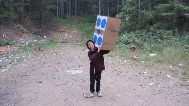 暑假跟兒子約好了,要帶他去森林裡面練習步槍射擊,所以有幾個晚上他睡覺前我們固定一起睡前聊天的時間就改成了射擊預習,雖然栓式步槍的基本操作方式他已經學過,但是還是重複教他射擊要領,希望小朋友不要打地瓜 … 為了要讓小朋友做為初學者射擊的過程增添多點樂趣,除了預備靶紙之外,我們還帶了一些氣球,水球,還有幾瓶用過的瓶裝水。 一切就緒後,就把槍彈,土製靶架(木凳跟木條),水桶(裡面裝水球跟瓶裝水),折合桌跟椅子都裝上車,轉好鬧鐘,睡覺去~ 五點整起床,吃點東西後就開車出門囉~ 天色還暗,6點才會日出。路上車子不多~一路上跟兒子聊天,時間過的也很快~ ![]() 開了45分鐘左右,到了荒郊野外的森林裡。 把桌子擺好,這是待會要上場的步槍兩把。 ![]() 小傢伙先出槍試瞄。 ![]() 給小朋友熱身一下抓點感覺~ 先打靶紙,我5發打完才發現忘記帶一字起歸零瞄鏡…$%^$%*#@# ![]() 檢查靶紙~ ![]() 然後就拿出水桶,準備把氣球跟水瓶拿來打。 ![]() 請小朋友自己設置。 ![]() 每一輪打完後我們都去把破掉的水瓶跟破掉的汽球皮撿回來,放在預備好的垃圾袋內,順便檢視一下瓶子被子彈打中後的慘狀~ 這個還好 ![]() 這個就慘一點 ![]() .22 WMR子彈打光了,換我上場 ![]() 打了10發~沒有繼續打的原因是還要趕去上班,已經快要八點了~ 小朋友也打了一發,第一次打5.56~ 最後該走了,請小朋友一起收拾,把垃圾撿一檢,彈殼通通撿回來~ 靶箱上肩~ ![]() 後來帶他去買麥當勞早餐,天色已經全亮,景色優美~ ![]() 送他回家後把槍彈收好,然後衝去上班,小朋友回家後跟媽媽還有姐姐show他打到目標的影片,看起來非常快樂~ 後來回想,我們花了很多時間擺設標靶,打幾發就走去檢視,拾取打爆的瓶子或氣球,真正打掉的子彈數目不多,但是這過程很愉快,最讓我訝異的是開始打物件靶時他第一發就打中那顆小小的氣球,我算一算,小朋友總共用了13發子彈打掉9個標靶,整體來說他打的比我預期的還要好,真是高興~ 這是射擊的片段影片 http://www.youtube.com/watch?v=GVVxAVYkYMM 此文章於 2011-09-28 01:55 PM 被 prelude 編輯. |