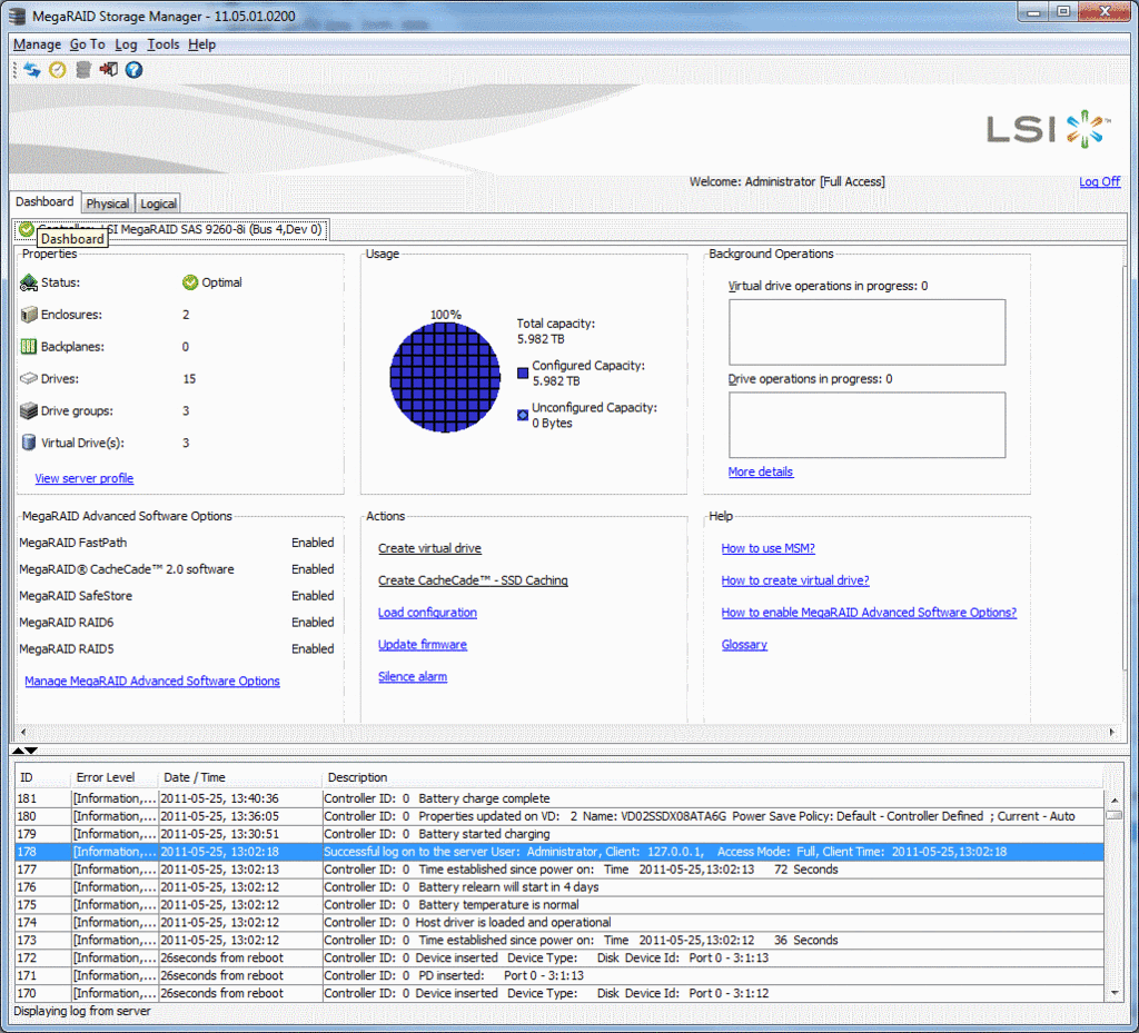 Exclamation LSI LSISAS2108相遇Crucial M4 64GB(x08)