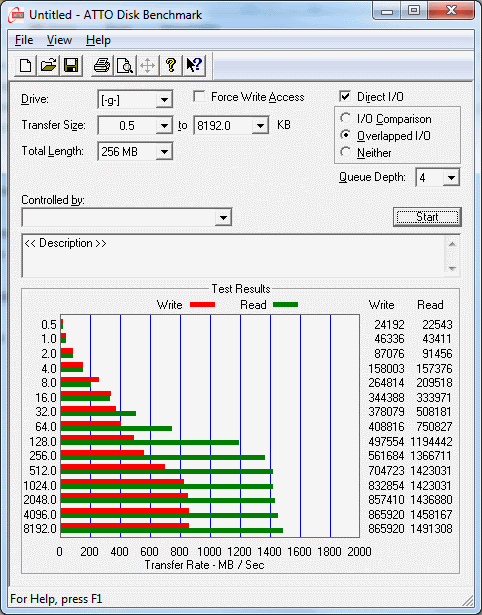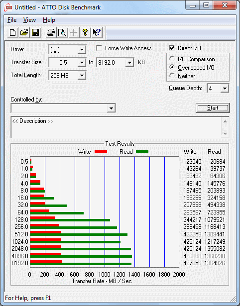 2. ATTO測得最大值為1.4GB/s, 無法在上去....