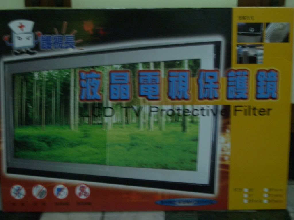螢幕放置在客廳,這片是裝來保護用的 |