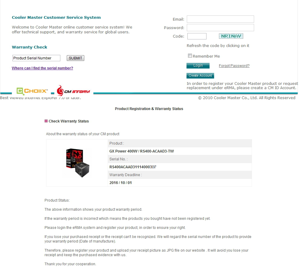 5.保固細節 : CoolerMaster 原廠5年保固(依序號出廠條碼保固)保固到 2016 / 10 / 01