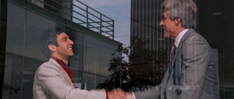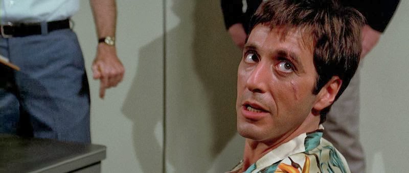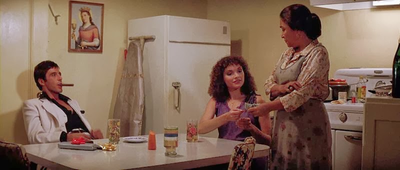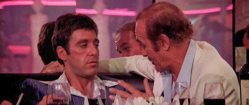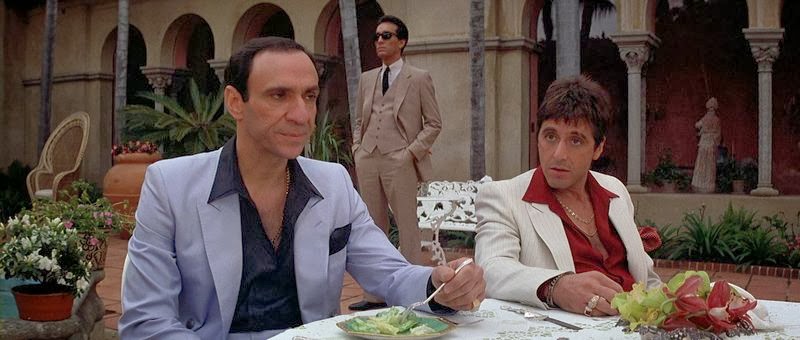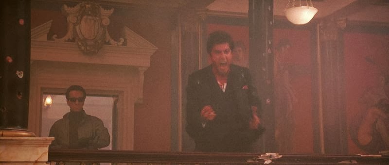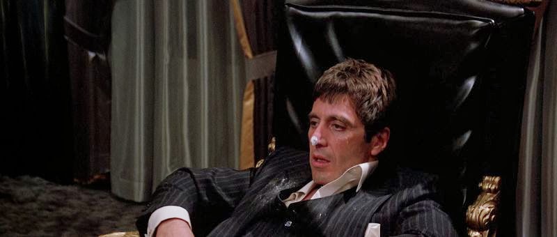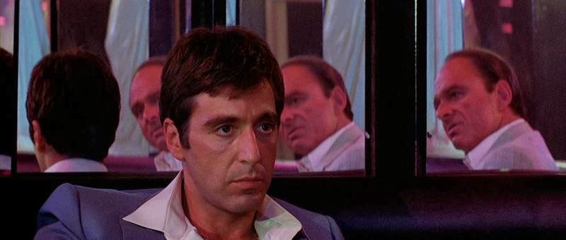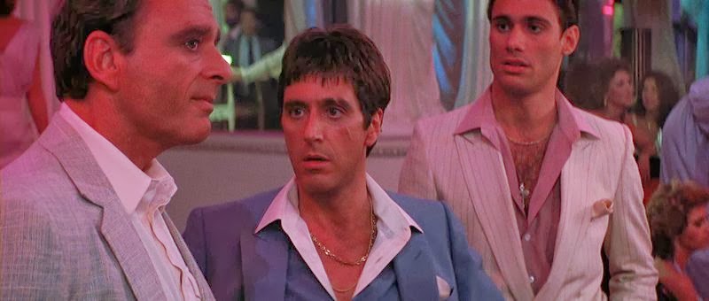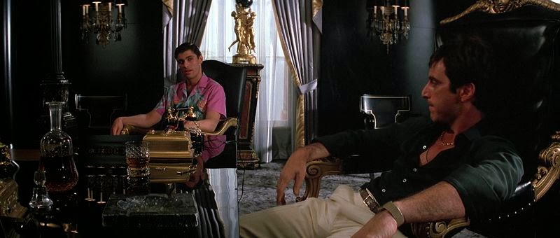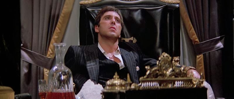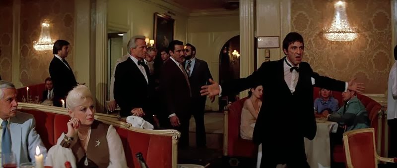 ![]() 他以為擁有了全世界就能改變,但他其實一直都是這個不公平的世界的奴隸。 邁阿密,這裡是充滿機會的城市,這裡有所有一切最美好的事物,只要你有實力、有膽量來贏取,這一切都將會拜倒在你的腳下,就像是征服了最美麗的女人一樣。 ![]() 首次觀看本片,深深受到前兩個小時的Tony Montana崛起過程的震撼。描寫他如何一再地利用機會證明自己的能耐,從一個洗碗工搖身一變成為邁阿密角頭Frank身邊的第二號人物,然後再更進一步擊敗Frank,成為邁阿密當地權傾一時的古柯鹼梟雄。 ![]() 這段故事相當過癮、精彩,然而之後的故事卻急轉直下,權傾一時的Tony很快就身處在危機四伏的險境。在各式各樣的內憂外患下,這時的Tony反而不若奮力爬上高位時那樣吸引人,頹敗的Tony看得令人坐立難安,無法想像不到半小時前的那個充滿雄心壯志的戰士這麼快就墮落到這樣的境地,Tony的最後奮戰顯得相當地無奈、無力。 ![]() 再次觀看本片時,從中感受到了新的氣氛。前面三分之二的崛起劇情鋪成都是為了突顯Tony在最後的戰鬥,強烈對比出Tony是如何一步步走進這個絕境。他的成功就和他的失敗一樣,都是因自於他自身,成功是必然的、失敗也是必然的。但還不僅於此,還有更深刻的,對這個世界的真實面貌的描寫,不只是Tony,很多人最終都不得不臣服其腳下,可是很少人能像Tony這樣,為自己必然來到的失敗命運,奮戰到最後一刻。 ![]() The World Is Yours 世界,本片提供了相當多的篇幅強調這一點。而The World Is Yours這句話更是在片中不斷以不同的形式出現。 ![]() Tony離開古巴、來到美國,就是為了尋求一個能讓他大展手腳的新舞台,他深信美國、邁阿密就是他追求的樂園。邁阿密,這個城市就是他要征服、奪取的世界,因為在這個世界中,有他所渴望的一切。Tony用了一個對他而言相當貼切的方式來形容邁阿密。 ![]() Tony : This is paradise, I’m tellin’ ya. This town like a great big pussy just waiting to get fucked. (我告訴你,這裡是天堂。這個城市就像個女人等著人去征服她。) 對Tony而言,這個城市充滿了機會,只要敢伸手去拿,就會是你的。而他,Tony是一個來自古巴的鄉巴佬,沒受過教育,也沒有人脈,但是他懂得如何在街頭生存,他有膽識、決心和不怕死,他要奮力一搏,向其他人證明。他,Tony也可以混出一番事業,不會被人永遠踩在腳下。 ![]() 特別是要向他的媽媽和妹妹證明,他可以像個男人一樣,賺到很多錢回來,讓媽媽和妹妹變成有錢人,再也不用看人臉色,而且有尊嚴地走在街上,因為Tony是一個被很多人尊敬的人。 ![]() Tony的特質 無庸置疑,Tony出自於貧窮的街頭,因此他很懂得街頭的生存方式,而且他夠講義氣,有誠信、有原則,不背叛朋友、說到做到,就算對方是他討厭的人也一樣。 Tony: All I have in this world is my balls and my word and I don’t break them for no noe. (在這個世界上,我有的就是我的膽量和承諾,而且我絕對不會為了任何人背棄這一切。) ![]() 因為他這股直接、不拐彎的性格,加上他敢衝、敢拼的行事作為,很快他就為自己在Frank面前打出漂亮的一仗。一場和哥倫比亞人的交易,雖然Tony已經有備而來,但在邁阿密這個地盤上,Tony仍算是新人,所以還是吃了哥倫比亞人的虧,損失了一個人。 ![]() 但是,靠著Tony那堅毅不屈的性格,撐到了援兵來救,一舉逆轉情勢。這裡又展現出了Tony那殘酷的一面,有仇必報、以血還血,而且必定是加倍奉還的街頭法則。 ![]() 面對逃出的那個哥倫比亞人,他毫不猶豫就以處決的方式,在光天化日下直接行刑,非常的兇悍和暴力。這一幕也直接地把本片的暴力面貌展現地淋漓盡致。 ![]() 談到暴力,要回頭看一下Tony在本片的首次殺人。這場刺殺行動雖是買兇殺人,但是也表明了其中是含有Tony在古巴時的舊恨發洩,而且也很清楚地展現Tony有仇必報的原則。 ![]() Frank的告誡 Tony的膽量和勇氣讓Frank見識到了此人在這行會是相當有力的幫手,會是一個強而有力,可以用來嚇阻其他人的猛獸。然而,Frank也很清楚Tony不是一個願意甘居下位的人。從Tony強烈要求要親自把從哥倫比亞人手中搶來的貨和Frank的錢交給Frank這一點就能看出來,Tony對於自己打拼出來的成果絕對不會拱手讓給任何人。 ![]() Tony不只有膽量去拼,更有野心去奪取屬於他的成功,他不會甘願把自己的成功讓給老大,替老大扛轎。所以,Frank在引Tony入這行時就先告誡了他兩件事。 Frank: Lesson number one: Don’t underestimate the other guy’s greed. (第一課,不要低估其他人的貪心。) Elvira: Lesson number two: Don’t get high on your own supply. (第二課,不要用自己的貨。) ![]() Frank對Tony說的,不要低估他人的貪心,其實就是在說Tony,Tony的貪心遲早會成為禍害。而Elvira說的,不要用自己的貨,也是在指貪心這件事,但是是指過度沉迷於自己創造出來的虛幻。 ![]() Sosa的誘惑 從Frank對Sosa的顧忌,可以推測Sosa的勢力比Frank大,而且資本也雄厚很多。對Sosa來說,他有能力穩定產出大量、高品質的古柯鹼,而他只需要一個經銷商幫他推向北美市場。 ![]() Sosa本來計劃是要和Frank接洽,然而Frank並未親自現身,而是派了Tony和Omar前來做有限度的洽談,這和Sosa期望的相去太遠。不過,卻也讓Sosa發現Tony的野心夠大,足夠作為他銷往北美的馬前卒。 ![]() 這場洽談有一段戲,就是Sosa指控Omar其實是警方線人,當場就處決他,而且還把處決過程表演給Tony看。一方面宣示他的手段夠很、一