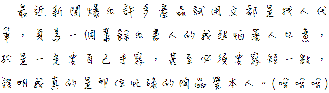 標點符號就破功了~ 只有簽名是手寫的吧? ![]() |