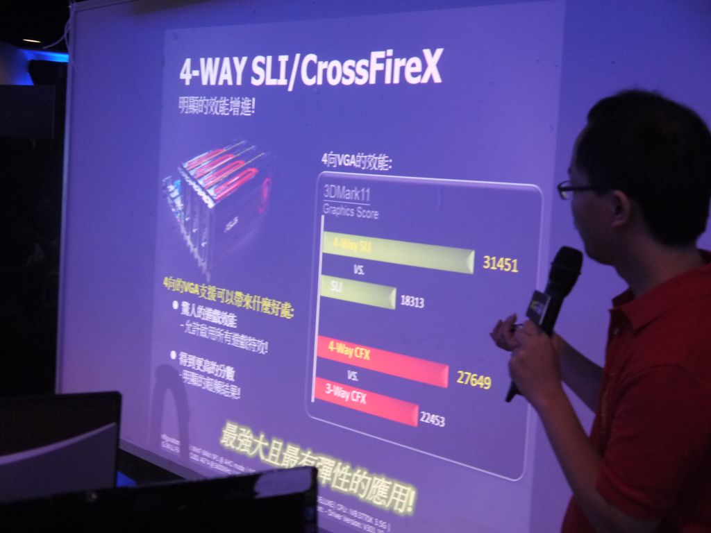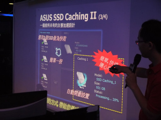 XF 網聚除了與許多品牌合作,讓廠商展示產品之外,還有抽獎和課程,這次網聚還有個主題就是讓大家又愛又恨的暗黑破壞神 3。 ![]() 第一家介紹的是ASUS。 ![]() ASUS P8Z77-V Premium的產品特色。 ![]() 這張主機板的特色是首批搭載 Thunderbolt 的主機板,傳輸速率更高。 ![]() Thunderbolt 可以同時提供資料和顯示的訊息傳輸。 ![]() 完整的PCIx4頻寬,保留最大傳輸效能,是現在正要普及的 USB 3.0 2倍快,原本只在 Mac 系列出現,現在 PC 使用者也有機會用到了。 ![]() Display Chain,可以串接 6 個裝置加上 1 個螢幕。 ![]() 支援 4 Way SLI/CF,擁有強大的處理效能。 ![]() 搭載 PCIe 3.0 Expansion Bridge,總共有 32 條 PCIe 3.0 訊號線路。 ![]() 4個 PCIe 3.0 X16 的擴充插槽設計,可以滿足玩家擴充需求。 ![]() 4 Way 的效能無庸置疑。 ![]() ASUS 獨家的 SSD Caching II,多個 SSD 快取提供大容量和驚人效能。 ![]() 雖然在 Intel 有提供軟體的 ISRT ,而 ASUS 的方案是屬於硬體方面。如果受限於每月預算,可以分批購買 SSD 再掛上去,掛越多,速度也會越快。 ![]() 無論從金額或是容量都贏過其他方案。 ![]() SSD Caching II 操作也很簡單友善。 ![]() SSD Caching II 更靈活、更省錢、簡單好用及快速設置。 ![]() ![]() 接下來要講的與暗黑破壞神 3 有關係。 ![]() ASUS 很榮幸成為暗黑破壞神 3 官方合作夥伴。 ![]() 推出了主機、螢幕和筆電。 ![]() ASUS主機板型號的產品定位。最高階是 ROG ,還有中階和入門系列。 ![]() ASUS 的 Z77 大軍 都準備好了,創新飆速效能、調整自訂風扇轉速及透過無線網路遙控。 ![]() Maximus V GENE Z77 系列主機板,全面釋放遊戲效能。 ![]() 高效能數位電源模組 ─ Extreme Engine Digi+ II,全數位化電源控制模組。 ![]() 在音質的方面也很有要求,SupermeFX III ,將數位與類比訊號做區隔。 ![]() mPCIe Combo,結合 mini-PCIe 與 mSATA 。 ![]() mPCIe 可以擴充無線網路、藍芽等裝置;mSATA 可以支援 SSD 擴充。 ![]() Asus Maximus V Formula 搶先看。 ![]() 完美散熱設計,複合式空冷/水冷散熱模組設計,體驗絕佳散熱成效。 ![]() ThunderFX,可以想像成DAC。 ![]() 支援多種品牌,包含家用遊戲機,內建耳機擴大器,支援高阻抗耳機,提供清晰音效。 ![]() 降低遊戲的環境噪音。 ![]() 有多種遊戲音效EQ可以依照喜好需求調整。 ![]() Mem TweakIT是記憶體調教排名平台,只要將檔案上傳就可以排名。 ![]() ASUS P8Z77-V 系列,第三代數位店員雙智能處理器;Wi-Fi GO! 最優異的無線、雲端傳輸體驗;智能風扇自動調教。 ![]() 全數位電源控制,如超薄筆電一般省電。 ![]() 智能數位設計-TPU,極致效能表現。 ![]() 除了高效能,電腦閒置或是不需要高效能的時候也能節能省電愛地球。 ![]() 以往只有筆電支援無線網路,現在有幾家主機板廠商將 Wi-Fi 也導入了主機板上,畢竟可以用無線網路是更方便的,也不會看到醜醜的線材。 ![]() 支援DLNA,可以將 PC 影音檔案直接傳輸到客廳電視,透過行動裝置控制PC。 ![]() FAN Xpert 2─風扇自動調校。 ![]() 可以依照需求按下按鈕調整風扇轉速。 ![]() 講完主機板,再來是顯示卡,這張 GTX 670 到底有什麼特別的地方呢? ![]() 靜音、低溫、高效能。效能提升,溫度卻下降。 ![]() 溫度更低也更安靜。 ![]() 原本設計與 Direct CU 的設計不一樣。 ![]() 8相超合金數位電源,低溫、壽命長、高效能。 ![]() GPU Tweak 即時超頻。 直覺調整,同步超頻電壓調整。 ![]() 最後是螢幕,這台 VG23AH,是一台3D顯示器,IPS面板,LED背光,動態對比高達80000000:1。 ![]() 有立體聲喇叭、6向人體工學機身調整,附有3D眼鏡及為眼鏡族設計的夾片式眼鏡。 ![]() ASUS 在 Computex 的 攤位號碼是 M0810 。 受限於篇幅限制,更多內容放在部落格: http://yuyu780906.blogspot.tw/2012/06/2012-xf.html