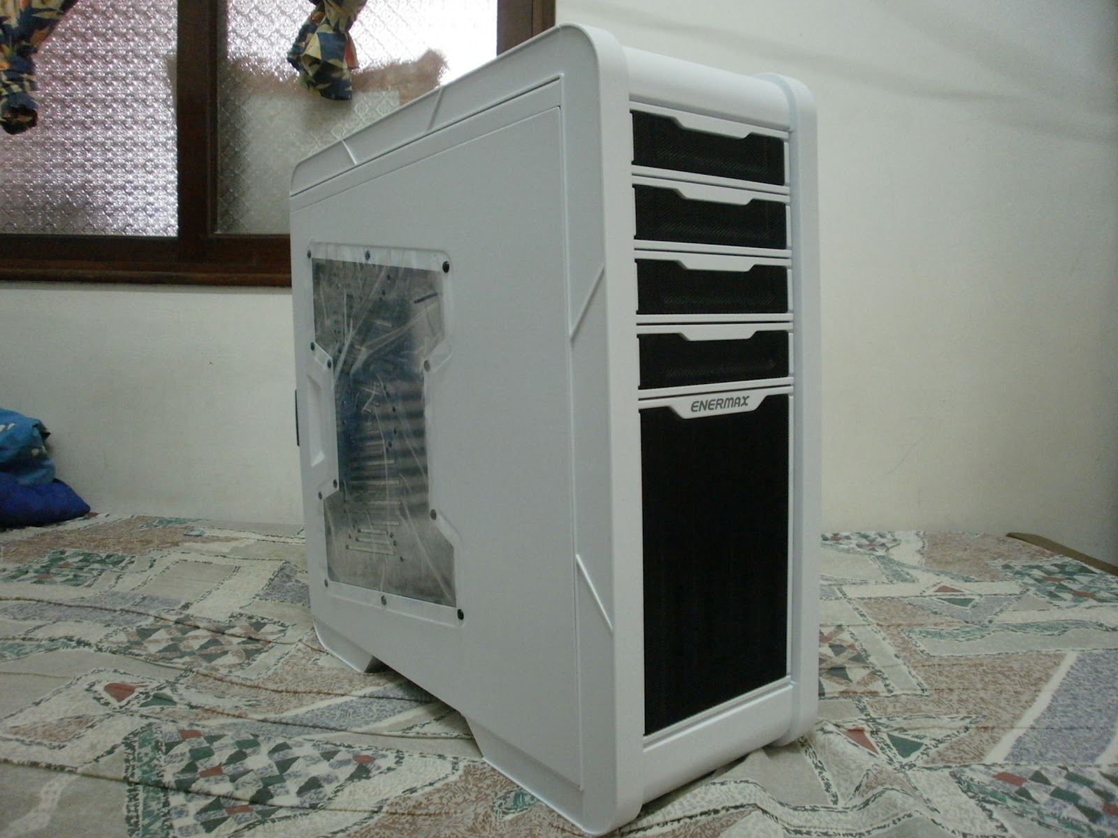 出廠也在透側板上貼膠膜,不安裝風扇可以不把膠膜取下